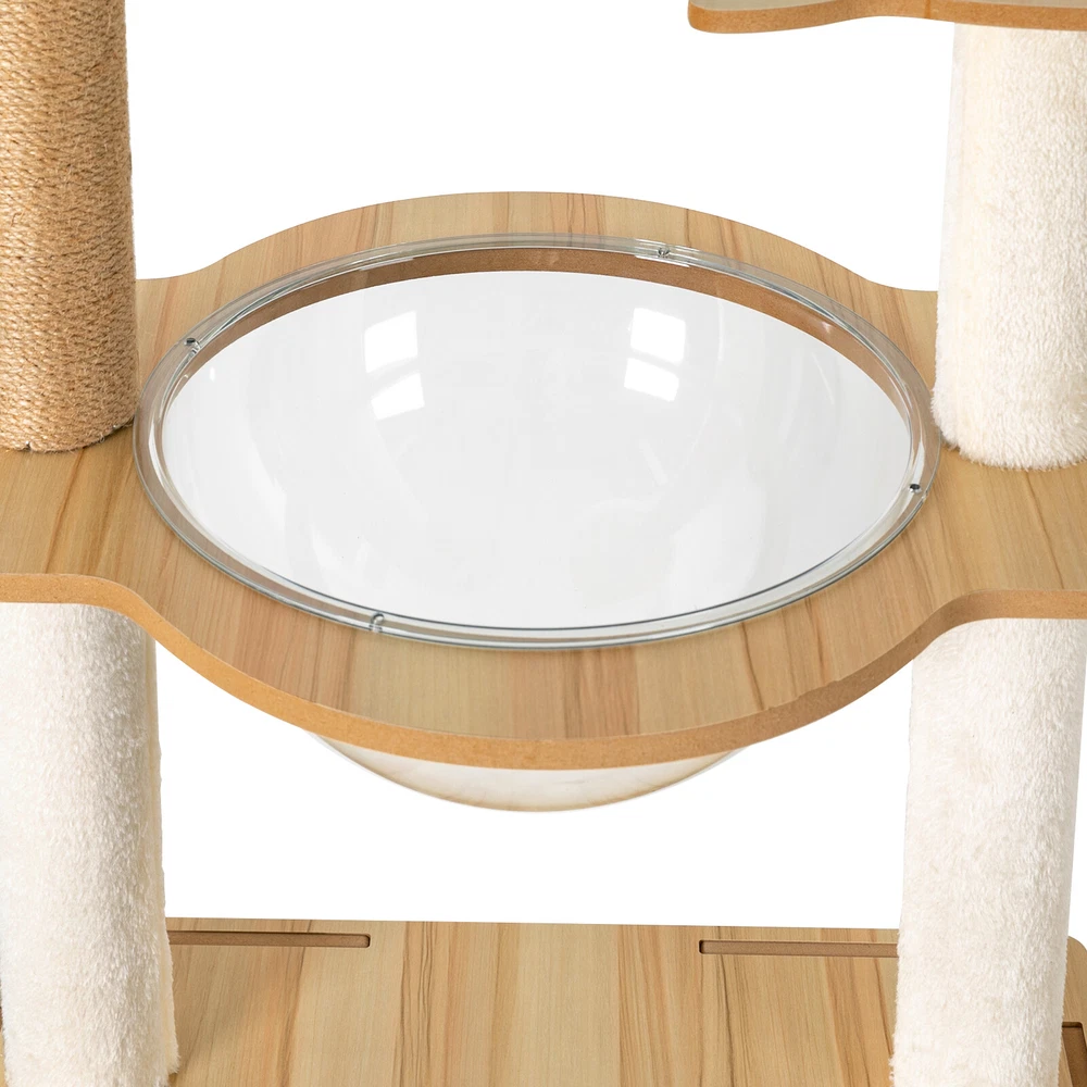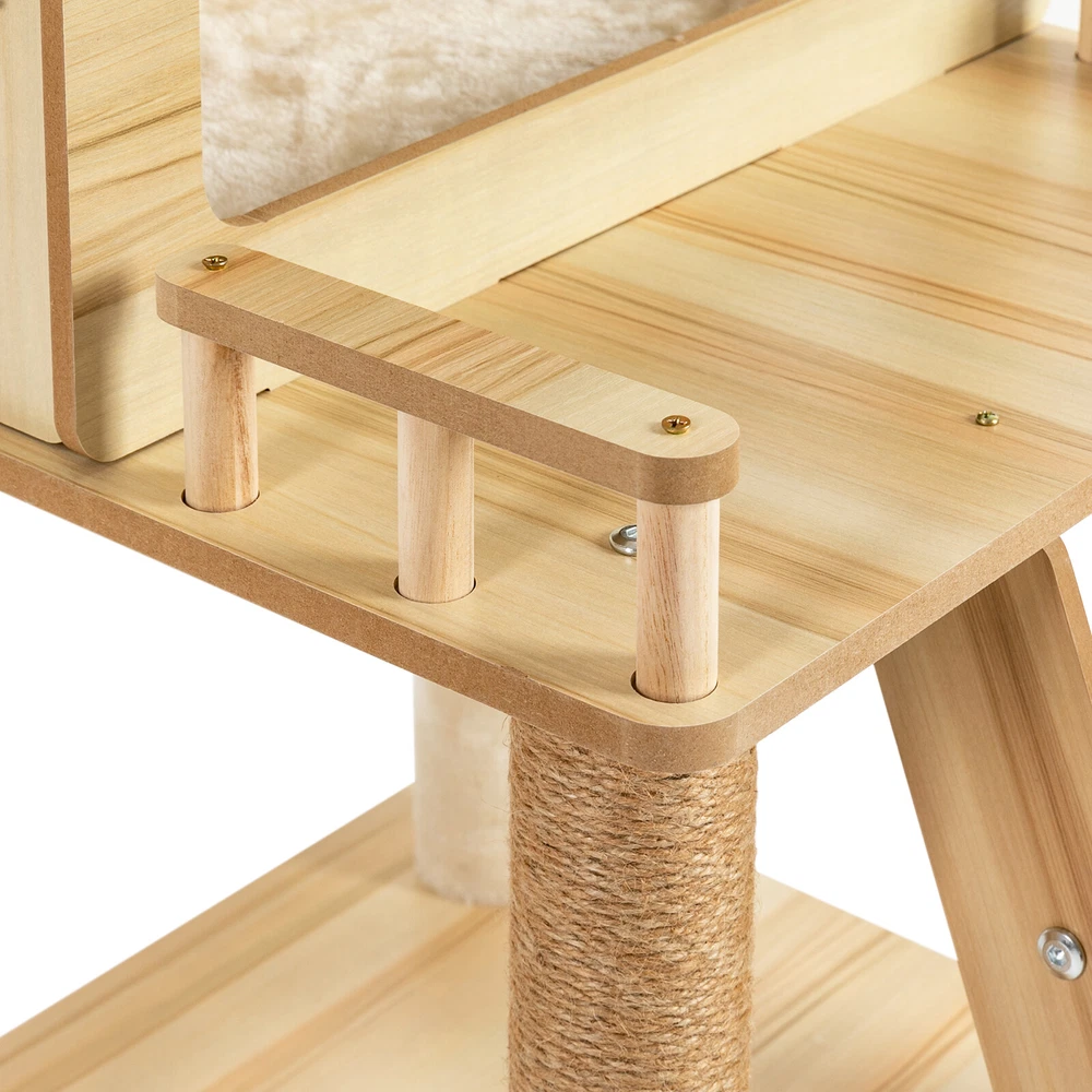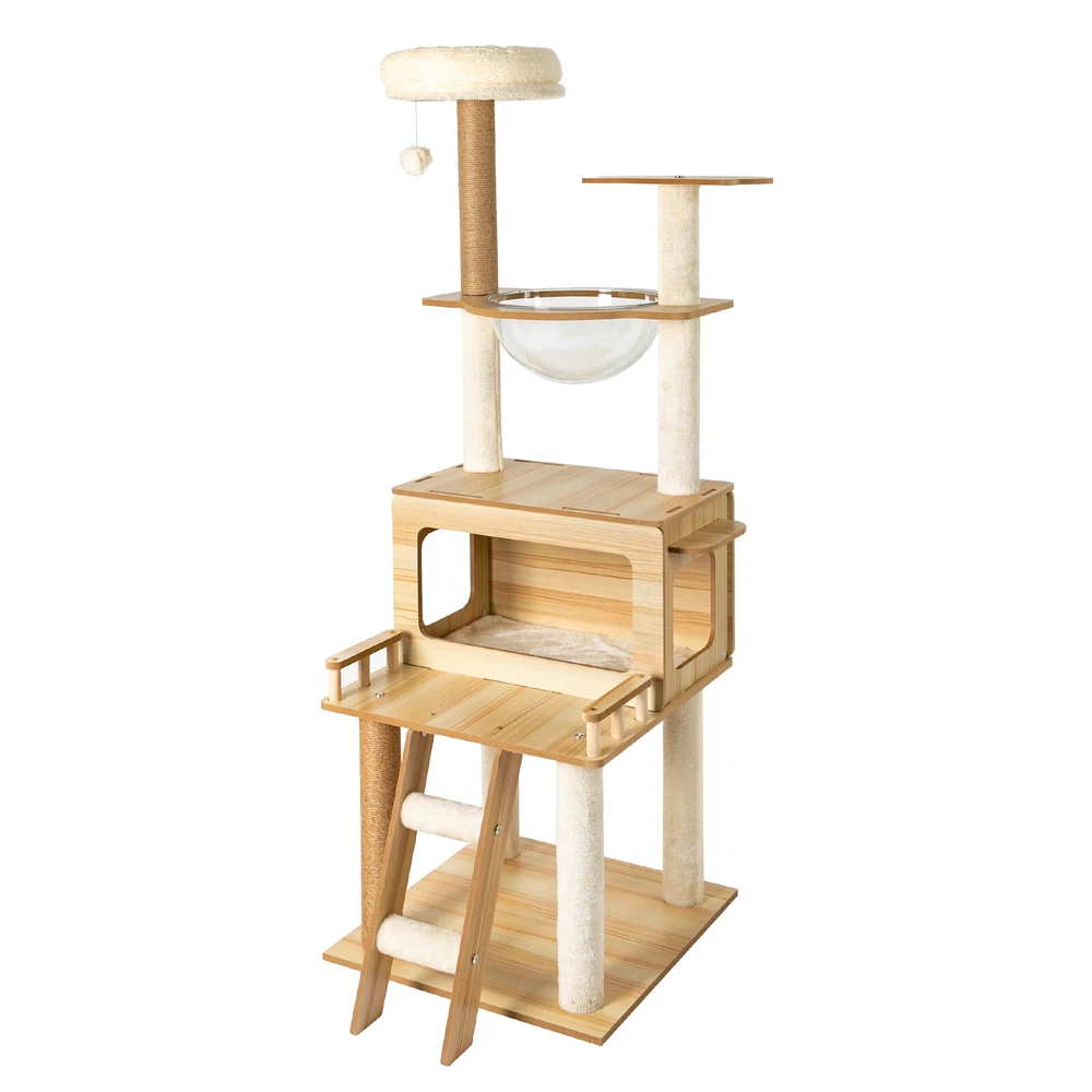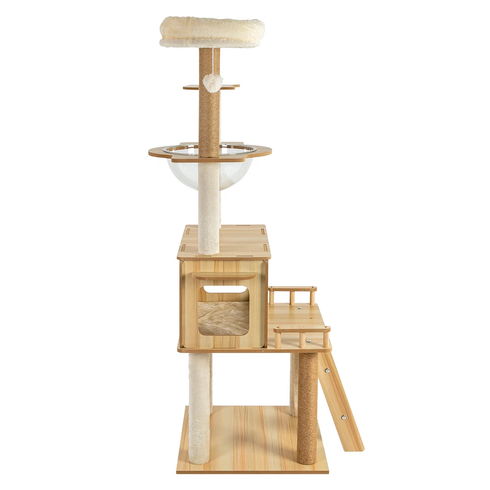 Cat Tree with Climbing Steps and Swing Ball, MDF Cat Tree, Cat Scratching Post Description If your cat is listless all day and scratches the furniture at any time, let's take a look at our cat tree! It can bring your cat a comfortable and pleasant place to play and rest. The sturdy construction and high-quality material ensure the safety of your cat and extend the life of this product. It has a cute appearance that you can send to your friends or family who love cats. Key Features Build to Last: Sturdy MDF and cardboard tube, soft flannelette, wear-resistant and scratch-resistant hemp rope, and the veneering process make it very safe and comfortable for cats and can perform well for a long time. Multiple Functions: The spacious cat tree expands the available area and provides a comfortable space for cats. It comes with scratching posts, wide platforms, a space capsule, cat nests, and a play ball for your cat to scratch, play, and sleep on this cat tree. This will make your cats more lively. With it, your pet can enjoy exploring and sniffing around their new home without scratching your furniture, carpet, clothes, and more. Good Helper: The hemp rope covering multiple pillars helps unleash the nature of cats, cultivate cats' interests, relieve their loneliness and anxiety, help sharpen their claws, improve their physical and mental health, and better promote their growth. Comfortable Experience: The acrylic space capsule with high transmittance and a concave fluid design that allows you to view your cat fully. In addition, it can satisfy the habit of cats curling up to sleep and better protect their spine. It can also let cats see the scenery outside. Soft nest pads make cats more comfortable, even in cold winter without worrying about cats getting cold. Eye-catching Appearance : It combines natural log color with chic white and has a cat-shaped platform, so this item can easily blend in with most home styles and upgrade your space. Strong Load-bearing Capacity: The sturdy material and stable square base (19.7*19.7 inches) with non-slip pads endow the product with a load-bearing capacity of approximately 22 lbs, making it suitable for use by the vast majority of cats. Assembly in a Breeze: Complete accessories, pre-drilled holes, a detailed English installation diagram, and a simple structure allow you to complete the assembly in a very short time to let your beloved pet enjoy the comfort! Space-saving: This product fully utilizes vertical space and covers an area of only 19.7*19.7 inches, so you can freely place it in the living room or other corners. Ideal Gift: With a cute appearance and practical functions, it is an excellent gift for family, friends, and lovers who love or have cats. Guaranteed Customer Service: We aim to provide quality products and services. If you have any problems, please feel free to contact us. We will reply and solve the problem for you as soon as possible. Details Climbing Steps : Multiple steps allow even elderly cats and cats with limited mobility to easily climb up and down. Round Corners: The round edges without any sharpness and burr avoid hurting the cat's claws, thus improving the safety and comfort of use. Application It is suitable for all kinds of cats less than 22 lbs to jump, scratch, sleep, climb, play, etc. You can place this cat tree in your living room, bathroom, balcony, playroom, study room, pet shop, and so on. Specifications Material: MDF, Cardboard Tube, Flannelette, Hemp Rope, Acrylic Surface Treatment: Veneering Color: Log Color, White Style: Modern Uses: Indoor Model: b35 Target Species: Cat Assembly Required: Yes Mount Type: Floor Mount Load-bearing Capacity: About 10kg/22 lbs Product Size: 50*50*147cm/19.7*19.7*57.9in Package Included 1* Cat Tree 1* English Installation Diagram All Accessories for Assembly Notes If the product is scratched or damaged by the cat's paws, please repair or replace it before continuing to use it to avoid further harm to your cat. Cats have a high level of vigilance toward new things. You can use their favorite toys to lure them a little, and they will quickly become familiar with and like this product. Because cats like to jump and play, for safety, we recommend that you connect this product to a wall to enhance stability. Please allow the slight color difference caused by the shooting light and 1-3cm error due to manual measurement, and make sure you do not mind before you order. Payment Delivery details Terms of sales About us Contact us Payment We accept ebay payment 。 Fees such as import duties, taxes are not included in the item price or shipping costs. These charges are the buyer's responsibility. Delivery details Shipping: 2-9 working days to: USA Terms of sales We maintain high standards of excellence and strive for hundred percent customer satisfaction. Feedback is very important to us. We hope that you contact us immediately before you give neutral or negative feedback, so that we can address your concerns. It is impossible to address issues if we do not know about them! About us Your satis faction is our ultimate goal. We work hard to earn your trust and future business. Our certified technicians have tested each item before shipping. The unit comes with 1 year limited warranty on all manufacturing defects. a) If you receive a defective item, you may return it or ask for a discount. Please contact us within 14 days after you receive the package. b) What you returned must be intact and in its original packaging as re? u. Customer is responsible for shipping costs of the returned item. c) We will cover the cost of shipping back t with the shipping rate indicated in the registration page. We will send you a new unit or refund the full payment you paid. Thank you. Contact us Business Hour Business Hour: Monday To Friday: 8:30 AM to 5:00 PM (Beijing China time) Due to time zones, our reply to your questions may not be immediately. But within above working time, we will reply your email within 24 h