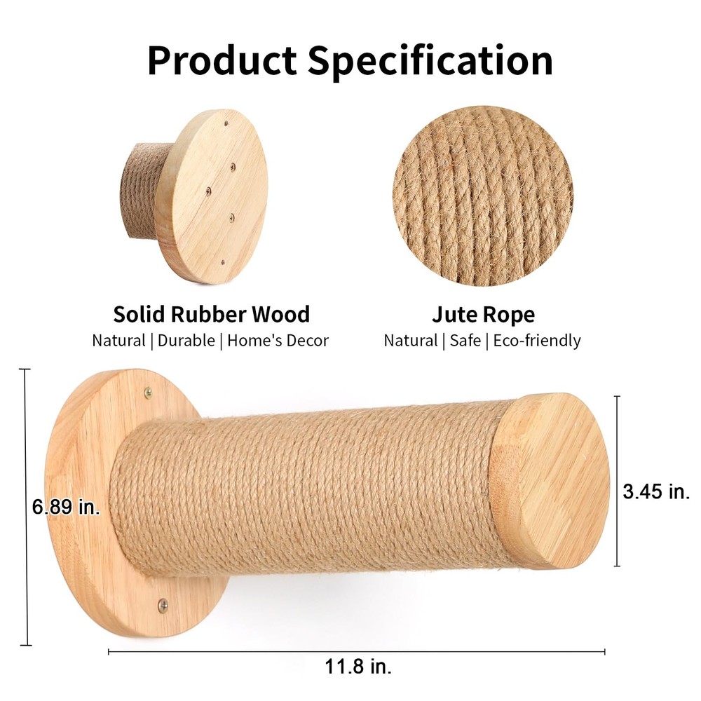 DIY Cat Shelves - Cat tree provides multi-level design to satisfy your cat's instinct to climb. Climbing step for cats on the wall give your cats an enjoyable environment to keep them active and happy. Easy To Install - Simply drill small holes for the anchors and screw the shelves to the wall, using the screws and the wall anchors included in our package. Save your room space, the best indoor cat furniture for you to choose from. Ideal Dimension - Layer board Dimensions. Diameter 3 4/5 inch, depth 11 4/5 inch. Great for your cat climbing and exercising. Build To Last and Withstands Play - Our beautiful shelf is made of 100% Wood. Don't risk the safety of your cat with a cheaper model. Use our shelf, you can feel assured your cat is safe at play. Due to natural wood, each has a slight difference. Adds To Your Home's Decor - Our stylish cat wall perch, with neutral tones, blends seamlessly to almost any type of home furnishing. We sincerely hope our cat furniture helps turn your house into a home. Satisfaction - If you have any dissatisfaction with our products in 30 days after purchase, please feel free to though . We will solve the problem for you within 48 hours. Your satisfaction is our ultimate goal.