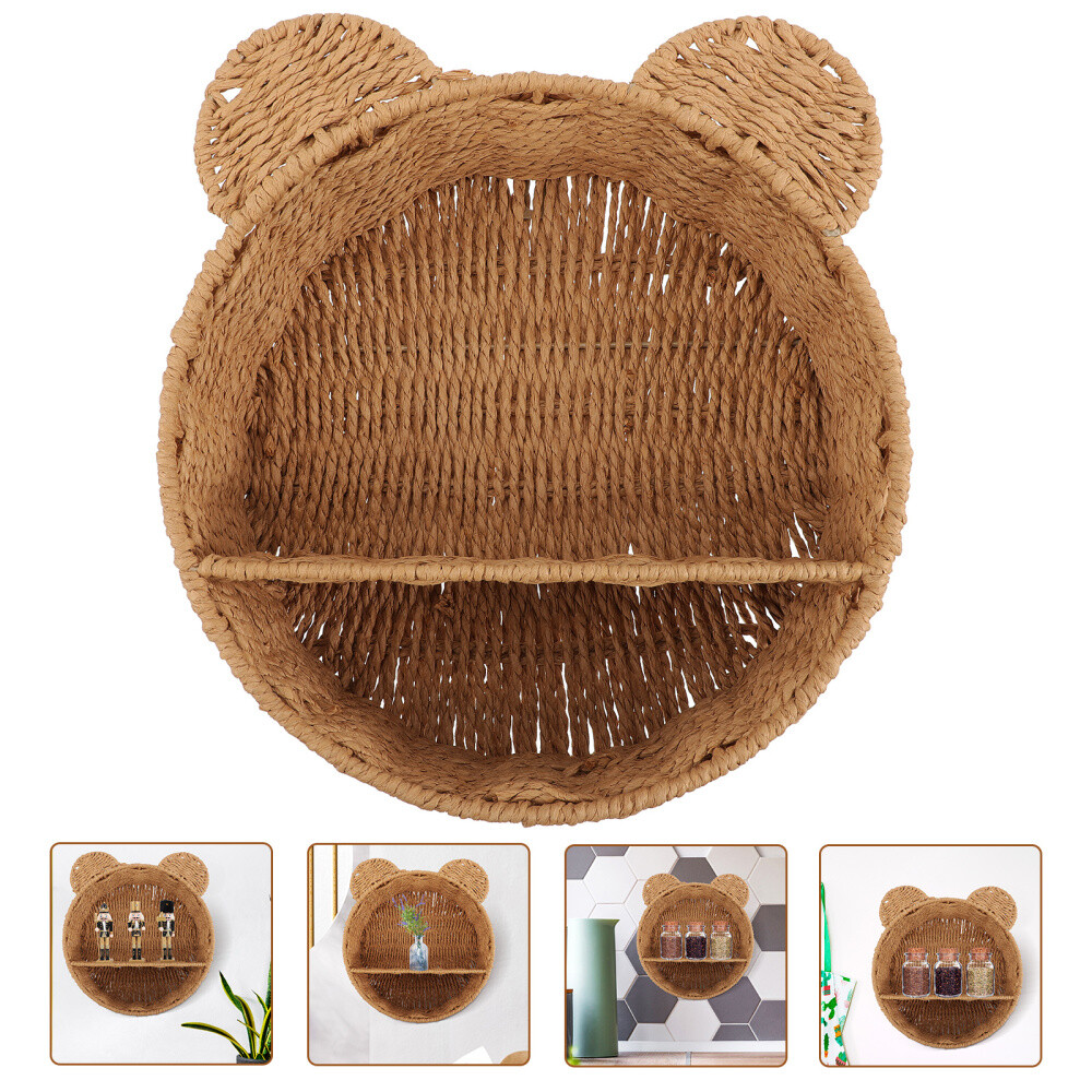Cat-Shaped Rattan Wall Shelf for Kitchen or Entryway Decor