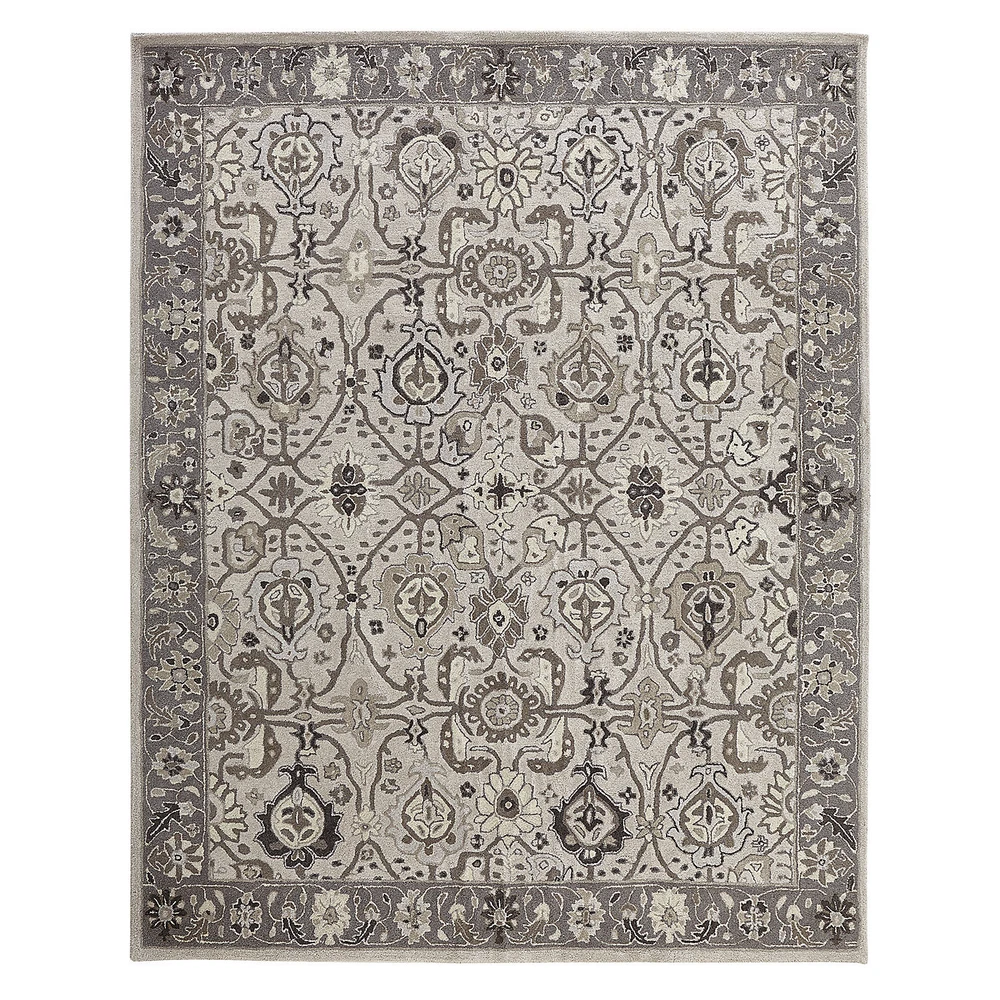The Catherine wool tufted area rug in grey features an intricate medallion design with ornate details. Handcrafted from high-quality wool, this rug offers both durability and a soft feel underfoot, making it ideal for adding a touch of classic elegance to living rooms, dining rooms, or bedrooms. Its traditional design and timeless color palette create a sophisticated focal point in any space.