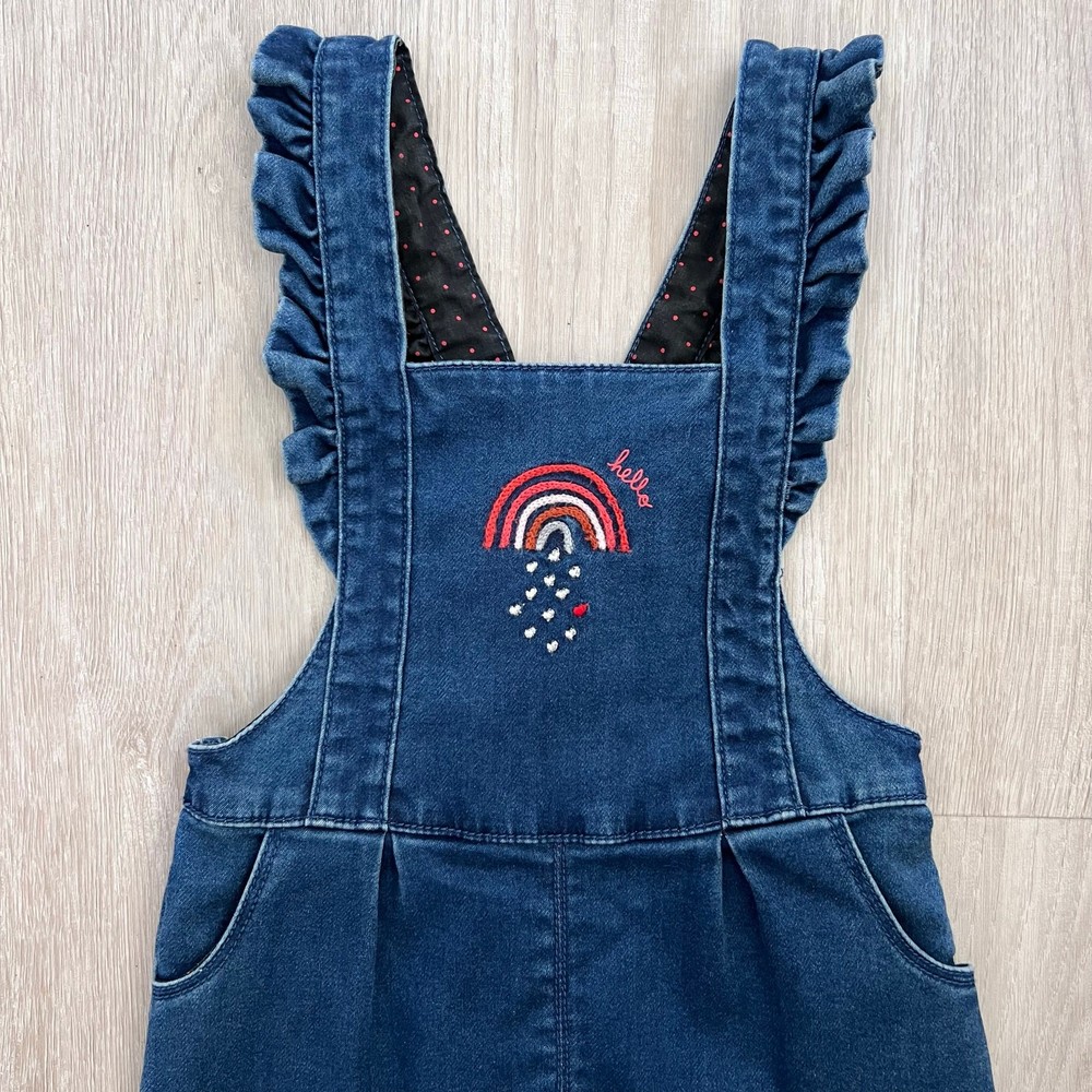 Absolutely love these adorable overalls! The stretchy denim is super soft and comfortable, and the ruffle straps with the embroidered rainbow add such a cute touch. The adjustable straps and elastic waist make them easy to fit, and the pockets are perfect for little hands. My daughter looks so stylish pairing them with a simple tee or a dressy blouse—they’re perfect for playtime or special occasions! The quality is amazing, and the design is just darling. Highly recommend!