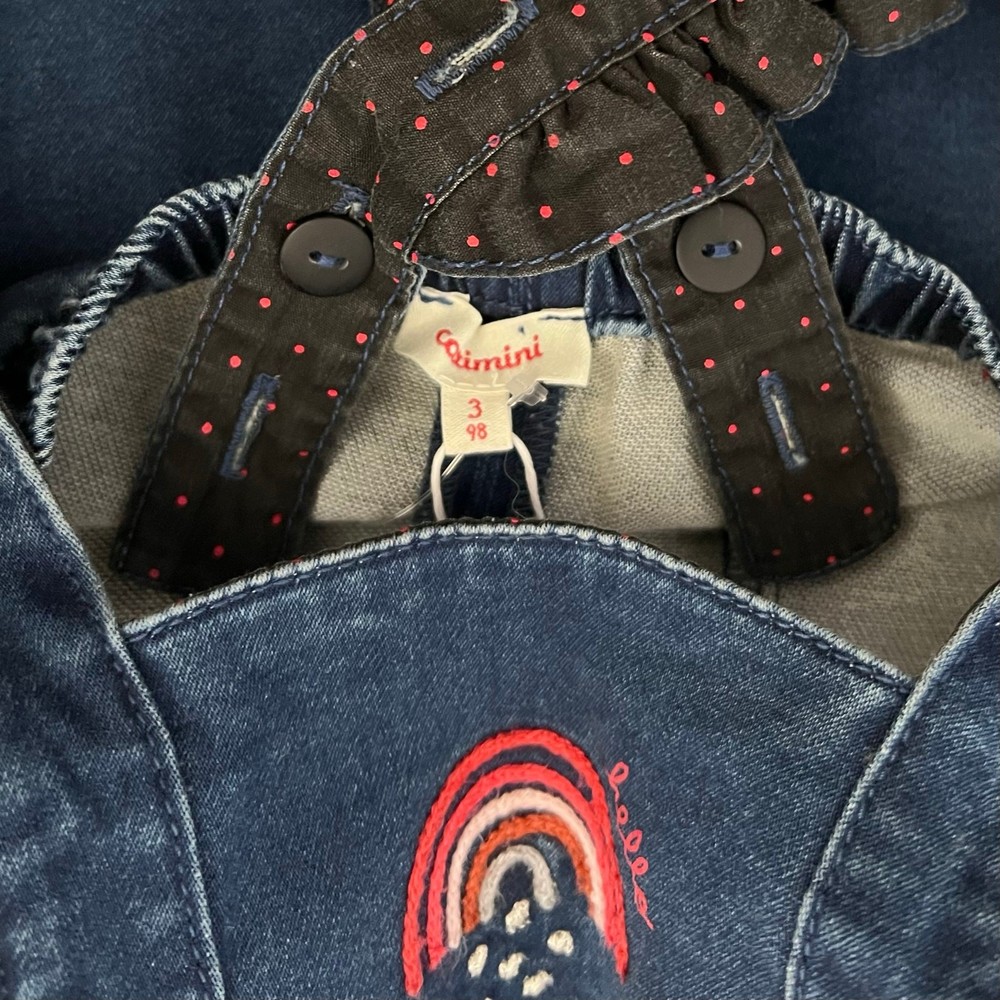 DESCRIPTION Adorable Catimini girls stretch denim overalls with ruffle straps and a colorful embroidered rainbow detail. Features an elastic waistband, adjustable straps, and functional pockets for comfort and style. Crafted from a soft cotton blend with stretch for easy movement. Perfect for casual wear, playdates, or photo sessions. Styling suggestion: Pair with a long sleeve tee and sneakers for a playful everyday outfit, or layer over a ruffle blouse for a dressier look. Details: • Brand: Catimini • Size: 3 • Color: Blue Denim • Material: 72% Cotton, 23% Polyester, 3% Viscose, 2% Elastane • Style: Overalls / One Piece • Features: Ruffle straps, embroidered rainbow, adjustable straps, elastic waist, pockets • Closure: Button straps • Fit: Regular • Pattern: Solid denim with embroidery • Occasion: Casual, Play, Photography • Season: All Seasons • Condition: New with tags • Style aesthetics: playful, cute, whimsical, colorful, casual, comfy, modern, photo-ready Ships fast! Clean, smoke-free, pet-friendly home. Bundle to save!