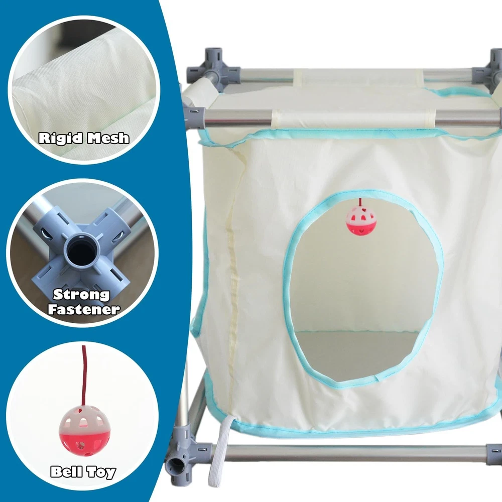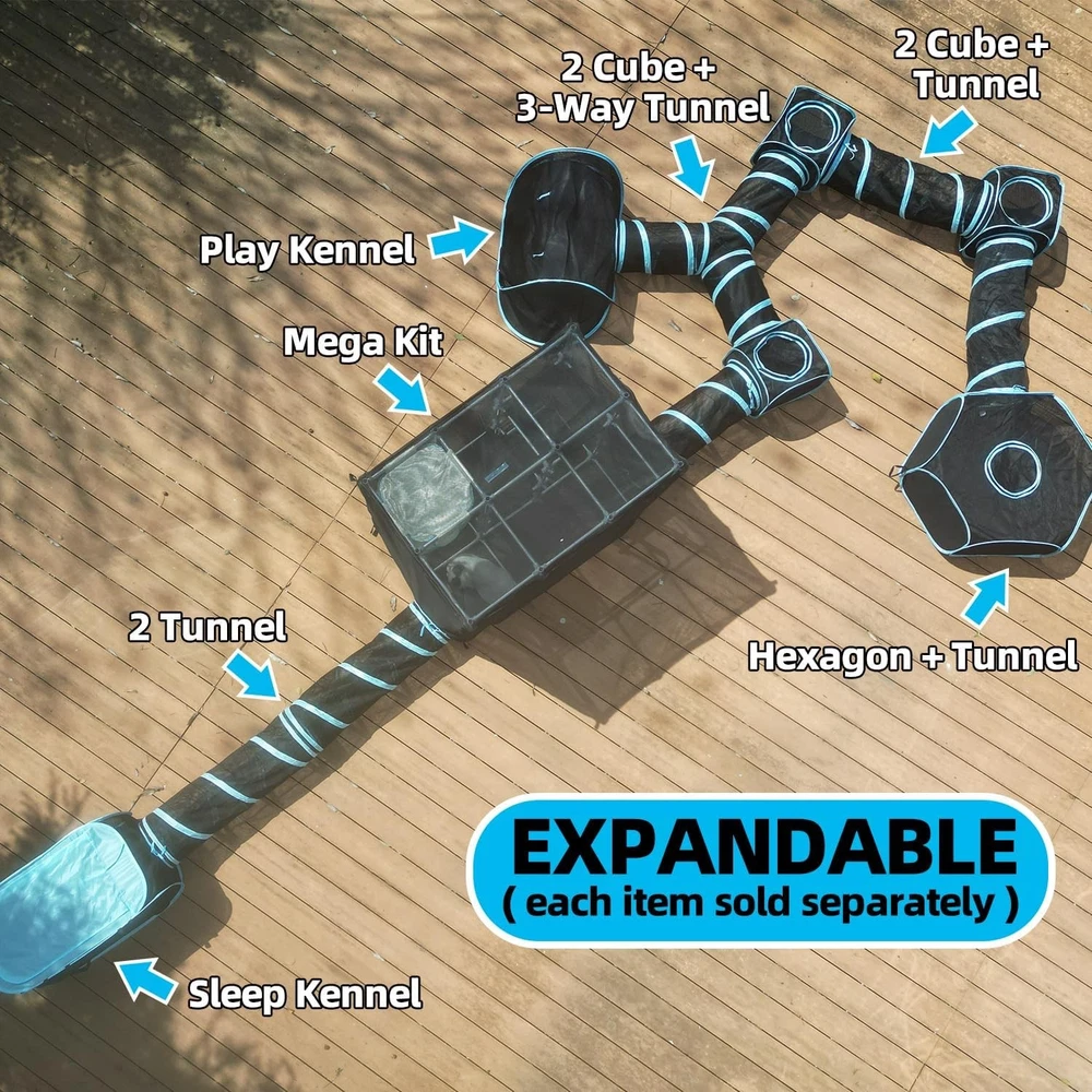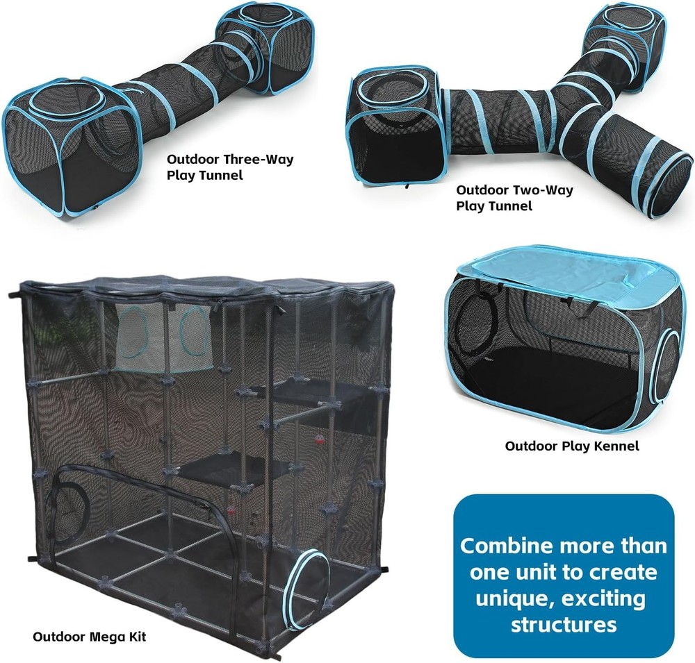 About this item SPACIOUS DESIGN : Ideal for multi-cat households, the Mega Kit offers ample room to run, hide, and play. With dimensions of 47.2 x 47.2 x 31.5(in), it’s a comfortable haven for your feline friends. MODULAR DESIGN : Our Mega Kit features a modular design, allowing you to mix and match different components to create a unique and personalized cat haven. Tailor the setup to your cats’ preferences and watch them explore their one-of-a-kind space. DURABLE CONSTRUCTION : Crafted from sturdy nylon mesh and robust aluminum pipes, this catio ensures long-lasting durability and stability. CONVENIENT MULTIPLE ENTRANCES : The Mega Kit features multiple entrances, allowing your cats to come and go independently, promoting exercise and playtime. SAFETY & FUNCTIONALITY : Our Catio provides a secure outdoor experience while safeguarding your cats from potential hazards. It’s the perfect blend of safety and fun. Color: Mega Kit Brand: Material: Aluminum, Nylon, Plastic Product Dimensions: 47"L x 47"W x 31"H Style: Modern