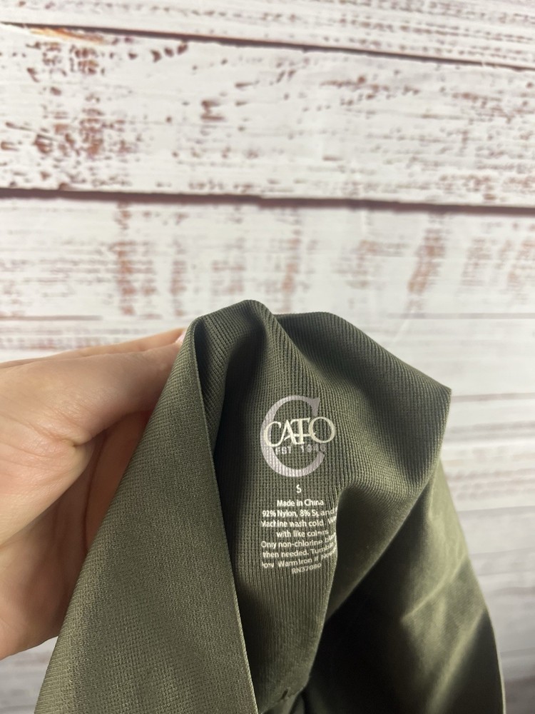 The Cato Leggings in women's small size and green color are perfect for active wear. Made from a blend of polyester, nylon, and spandex, these leggings offer comfort and flexibility for various activities like walking, dance, crossfit, yoga, and pilates. With an ultra low rise and a 20-inch inseam, these leggings provide a sleek and stylish look while being machine washable for easy care. Ideal for everyday use or workouts, these leggings from Cato are a versatile addition to any woman's wardrobe.