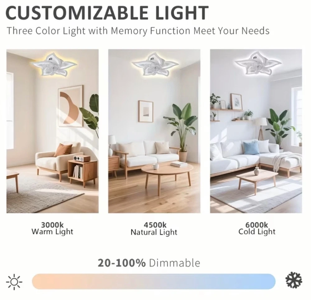 Modern Ceiling Fan with Lights, Featuring a Remote Control & a Quiet AC Motor