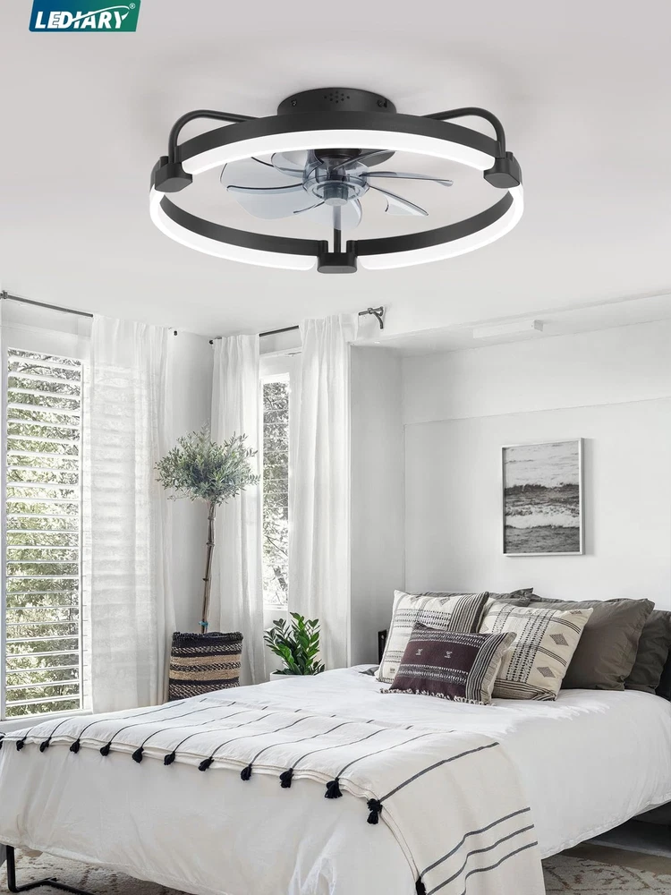 $ 52.8Ceiling Fan with Lights Remote Control,6 Speeds 3 Colors,Black Low Profile Flush