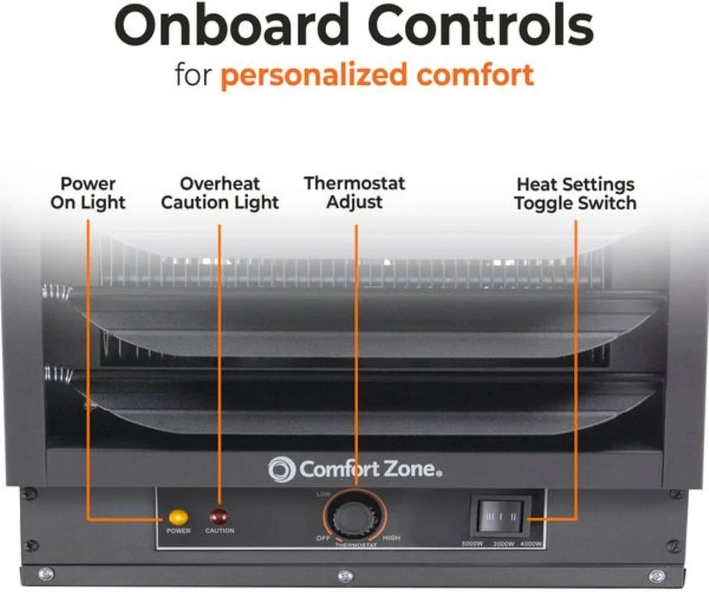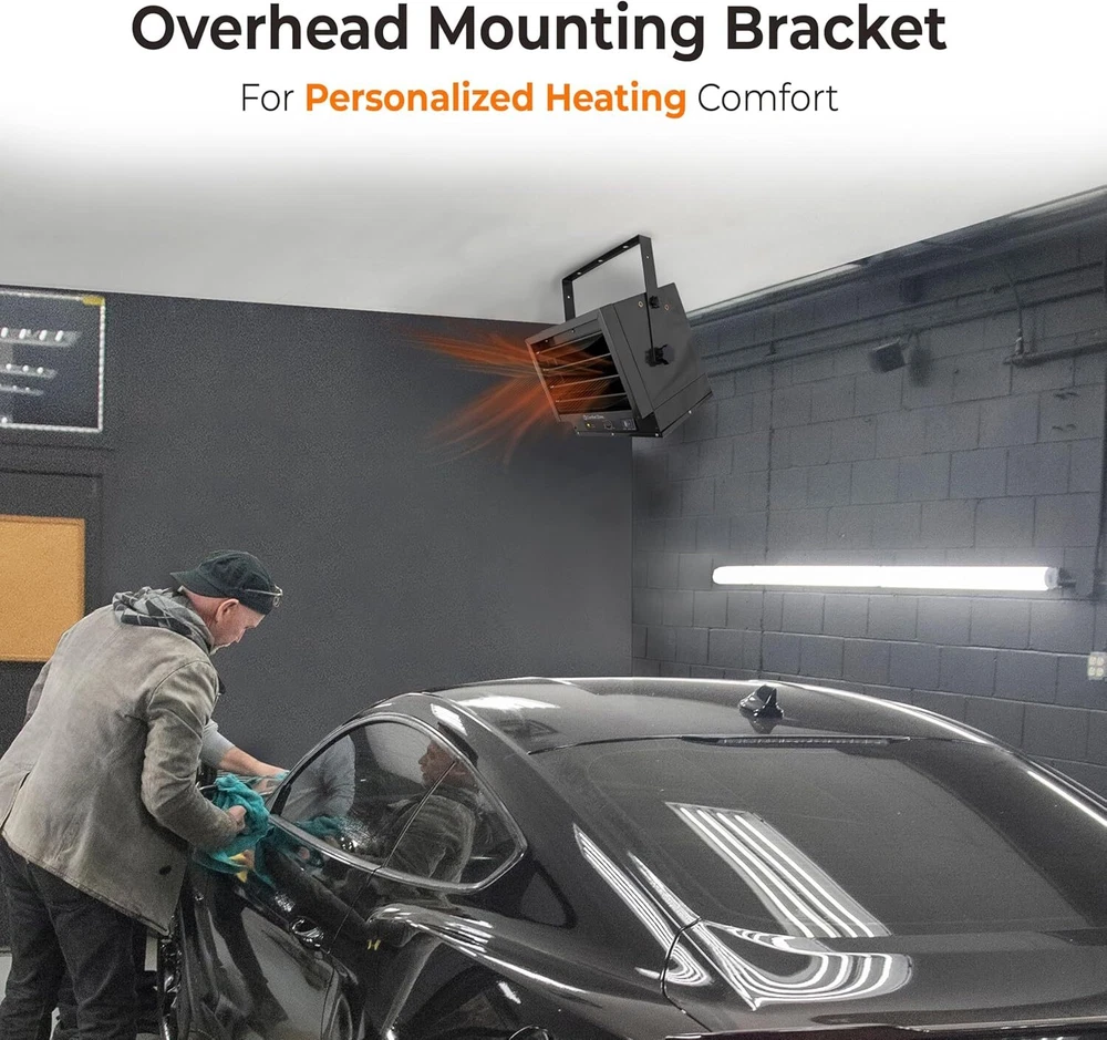 EFFICIENT CEILING MOUNT: With its ceiling-mount design and hard-wired installation, this fan-forced heater is perfect for spaces like warehouses, garages, and storage areas where floor space is limited. By utilizing the overhead space, you can maximize the utilization of your area while still enjoying powerful heating capabilities. Embrace the space-saving benefits of this ceiling-mounted heater and keep your valuable floor space free from obstructions. ROBUST STEEL CONSTRUCTION: Constructed from heavy-gauge steel, the body of this commercial heater exhibits exceptional durability, making it highly resistant to the temperature fluctuations commonly found in poorly insulated areas. With its robust steel construction, this heater is built to withstand the rigors of demanding environments, ensuring long-lasting performance and reliable heating capabilities. Embrace the reliability and durability of this steel-constructed commercial heater for efficient heating in challenging conditions. PRECISE HEAT DISTRIBUTION: The inclusion of louvers and an adjustable mounting angle enables targeted heating, allowing you to direct the airflow precisely where it is needed most. With its fan-forced design, this heater facilitates the efficient distribution of heat throughout the room, ensuring a consistent and comfortable environment. Experience the benefits of precise heat distribution and optimal airflow with this versatile and effective heating solution. USER-FRIENDLY TEMPERATURE CONTROL: The ceiling mount heater features a dual knob thermostat that provides convenient and precise control over the temperature settings. With these intuitive controls, you can easily adjust the heat output to achieve the perfect level of warmth for your space. The quick on/off functionality ensures effortless operation of the heater, allowing you to enjoy immediate comfort with just a simple twist of the knobs. Experience the convenience and ease of use offered by this efficient temperature control system. ENHANCED SAFETY FEATURES: Designed with your safety in mind, this ceiling mount heater is equipped with intelligent safety features for worry-free operation. The built-in sensor monitors the temperature and automatically shuts off the device if it detects overheating, providing reliable protection against potential hazards. The power indicator light conveniently illuminates when the unit is in use, giving you clear visual confirmation of its operational status. With these smart safety measures in place, you can enjoy the warmth and comfort.