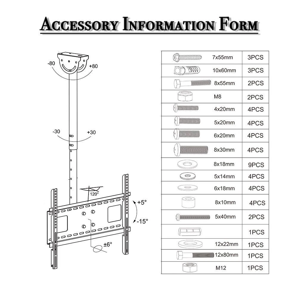 listing template VISIT OUR STORE SIGH UP FOR EMAIL Ceiling TV Mount Bracket LCD LED Plasma 32 40 43 47 50 55 60 65 70 Tilt Swivel The Ceiling TV Mount Bracket is perfect for mounting most any 32 to 70 inch TV or Monitor to the ceiling.It is designed to fit televisions of all brands.VESA from 200x100mm up to 600x400mm. Heavy gauge steel construction provides loading capacity up to 110 lbs. Mount height adjustable ceiling mount, tilt and swivel in all directions for multiple viewing angles, allowing you to position the screen perfectly for your application.This mount is perfect for installation in a bar, restaurant, fitness center, waiting area, dentist office, doctors office, garage,grocery stores,family room, and any other building and meeting area. Features: 1. Tilt swivel ceiling mount compatible with 32 to 70 inch LED LCD HDTV flat panel screen display 2. Durable steel construction supports weight capacity up to 110 lbs 3. Multi-directional adjustment tilt and swivel for perfect viewing angle 4. Multi-directional adjustments: tilt 15 degrees forward and 5 degrees backward; swivel left and right 60 degrees 5. Tilting ceiling plate allows mounting for wall and both flat and bevel roof installation Specification: 1. Brand: LEADZM 2. Model: TMC-7006 3. Type: Ceiling Mount 4. Supportable Display Size: Fit most 32"-70" 5. Tilt Range: 5°to -15° 6. Pan Swivel Angle: 60 degree 7. Adjustable Height Range: 960mm ~ 1160mm 8. Load Capacity: 110lbs 9. Material: Cold Rolled Plate 10. Surface: High Temperature Paint Piano 11. Vesa Size: Max: 600mm x 400mm Package Includes: 1 x TV Wall Mount 1 x Standard Hardware Kit(The Screw kit is standrd,don't make sure fit all the TV models,please buy one kit if don't fit) 1 x User Manual You might like this more>> Portable Princess Castle Play House Blue Large Kids Play Tent $23.79 Double Shoe Rack Closet Shelf Storage Organizer $19.49 Oil Painting Easel Sketch Box Portable Folding $57.49 FCH L-Shaped Corner Computer Desk Home Office Desk $109.99 10 Tier Durable Storage Organizer 30 Pair Shoe Tower $18.99 24 Slots PU Leather Wrist Watch Box Display Case Organizer $16.99 Shipping Policy 1. Ship from New Jersey by Standard Int'l Shipping, and only to VERIFIED PAYPAL ADDRESS . 2.International Buyers – Please Note: a. Import duties, taxes and charges are not included in the item price or shipping charges. These charges are the buyer’s responsibility. b. Please check with your country’s customs office to determine what these additional costs will be prior to bidding/buying. 3. Please check your shipping address carefully before checkout, it can't be changed if order completed. 4. All items will be shipped to buyer's ebay address. Before you pay, please make sure your address in ebay match the address you would like us to ship to. 5. Ship within 1 business day once payment completed. We do not ship on weekends or public holidays. 6. Item normally will arrive in 10-15 business days but sometimes goes to 25-30 business days for remote area. That is depends on the freight in different countries. Return Policies 1. Refunds given only if item DOA and cannot be replaced via PAYPAL . If so, Please contact us with 5 days since you receive the item and and return to us within 30 days from the delivery date for exchange or refund. 2. If you need return, please contact our customer service representative, let us know the detailed problem and send us some pictures for confirmation. Payment Payment should be sent within 8(EIGHT) days of auction closing. Feedback If you are dissatisfied for any reason, please do not be quick to leave negative/neutral feedback. We work hard to make sure EVERY CUSTOMER 100% SATISFIED and resolve any problem for you. Work Time Work Time: Monday to Saturday About Us | Newsletter| Feedback| Contact Us Copyright © 2021 City-green. All rights reserved. 无标题文档 Ceiling TV Mount Bracket LCD LED Plasma 32 40 43 47 50 55 60 65 70 Tilt Swivel The Ceiling TV Mount Bracket is perfect for mounting most any 32 to 70 inch TV or Monitor to the ceiling.It is designed to fit televisions of all brands.VESA from 200x100mm up to 600x400mm. Heavy gauge steel construction provides loading capacity up to 110 lbs. Mount height adjustable ceiling mount, tilt and swivel in all directions for multiple viewing angles, allowing you to position the screen perfectly for your application.This mount is perfect for installation in a bar, restaurant, fitness center, waiting area, dentist office, doctors office, garage,grocery stores,family room, and any other building and meeting area. Features: 1. Tilt swivel ceiling mount compatible with 32 to 70 inch LED LCD HDTV flat panel screen display 2. Durable steel construction supports weight capacity up to 110 lbs 3. Multi-directional adjustment tilt and swivel for perfect viewing angle 4. Multi-directional adjustments: tilt 15 degrees forward and 5 degrees backward; swivel left and right 60 degrees 5. Tilting ceiling plate allows mounting for wall and both flat and bevel roof installation Specification: 1. Brand: LEADZM 2. Model: TMC-7006 3. Type: Ceiling Mount 4. Supportable Display Size: Fit most 32"-70" 5. Tilt Range: 5°to -15° 6. Pan Swivel Angle: 60 degree 7. Adjustable Height Range: 960mm ~ 1160mm 8. Load Capacity: 110lbs 9. Material: Cold Rolled Plate 10. Surface: High Temperature Paint Piano 11. Vesa Size: Max: 600mm x 400mm Package Includes: 1 x TV Wall Mount 1 x Standard Hardware Kit(The Screw kit is standrd,don't make sure fit all the TV models,please buy one kit if don't fit) 1 x User Manual Shipping + 1. Ship worldwide from New Jersey by reliable shipping companies -- USPS, UPS, FEDEX, DHL, etc., and only to VERIFIED PAYPAL ADDRESS. Transport Delivery ETA. Package handling only takes 1 business day at our warehouse, so please make sure entering correct payment and shipping information before checking out. Once your payment is completed, we are not going to accept any more changes to your order. 2. Internatio