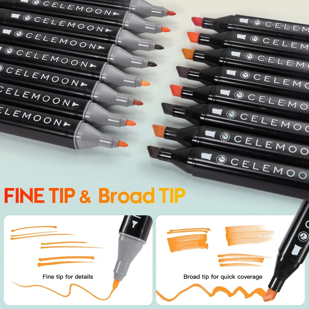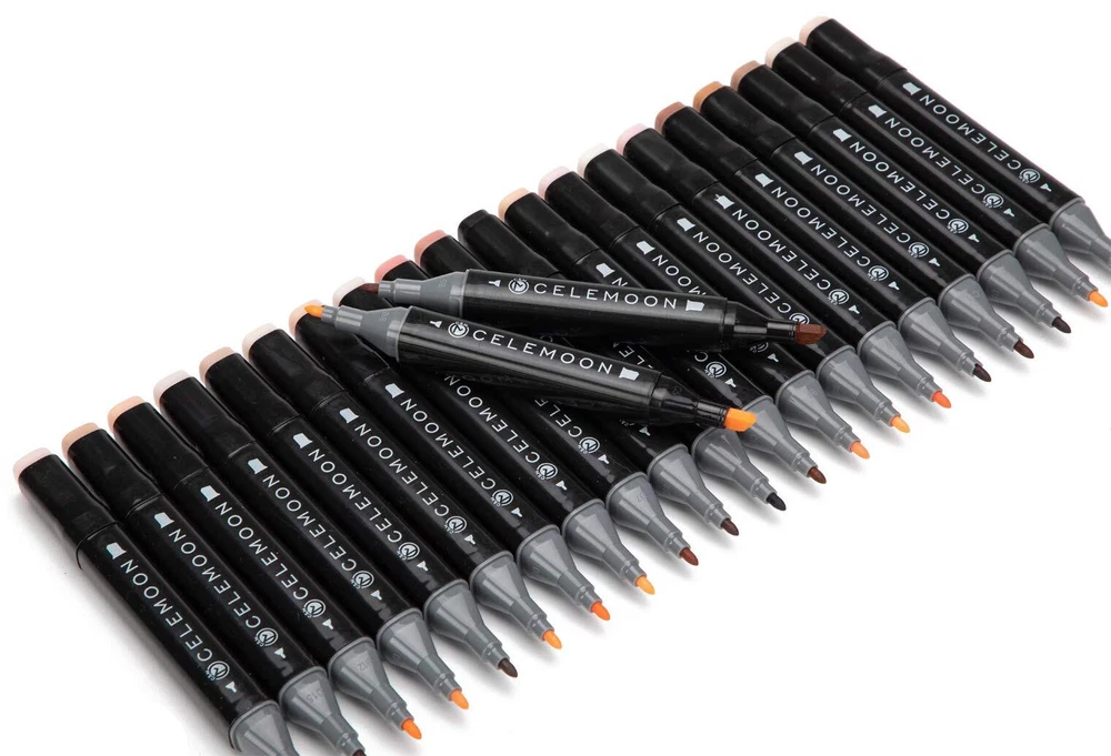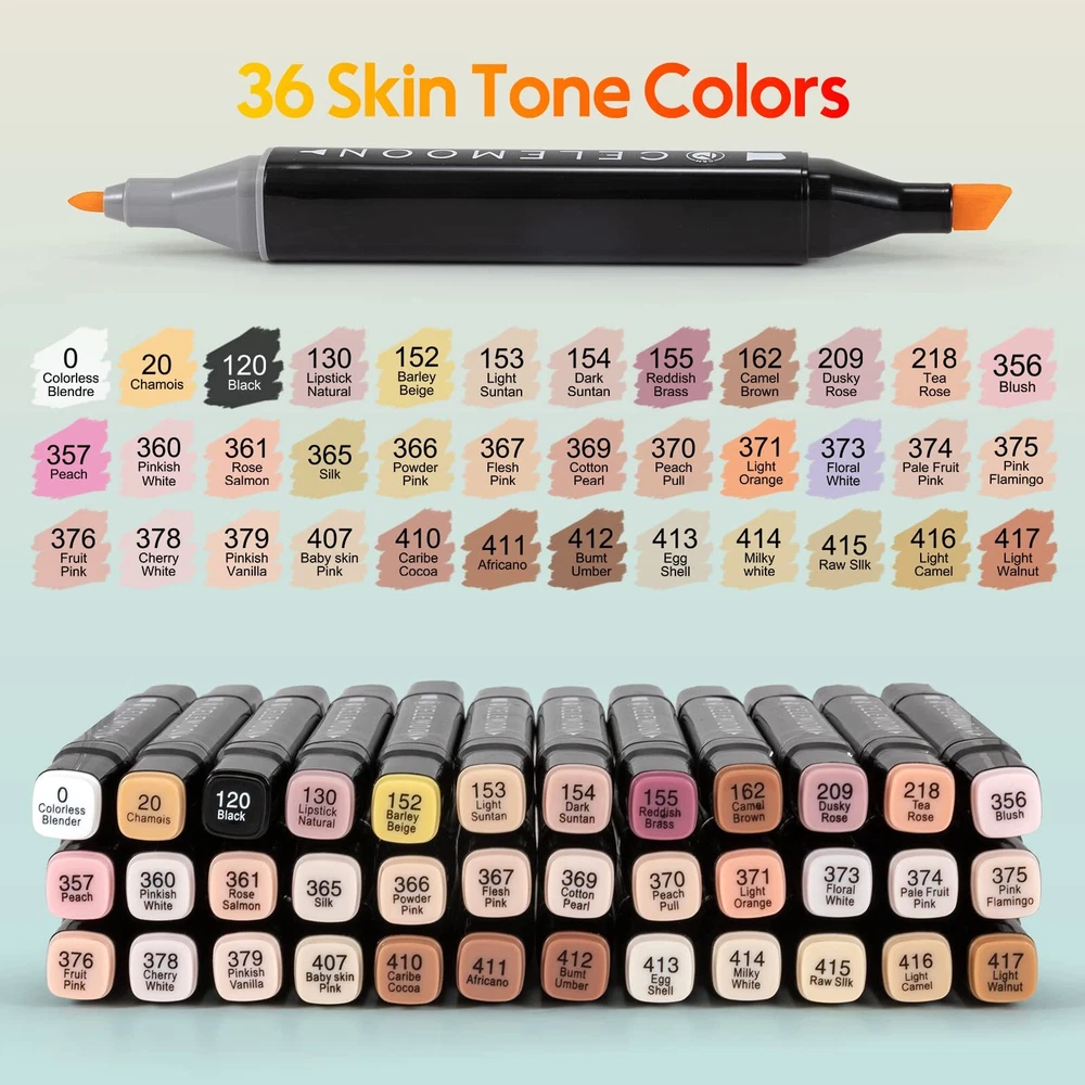 CeleMoon 36 Skin Tone Colors Dual Tip Alcohol Markers Pens, Fine and Broad Ch...