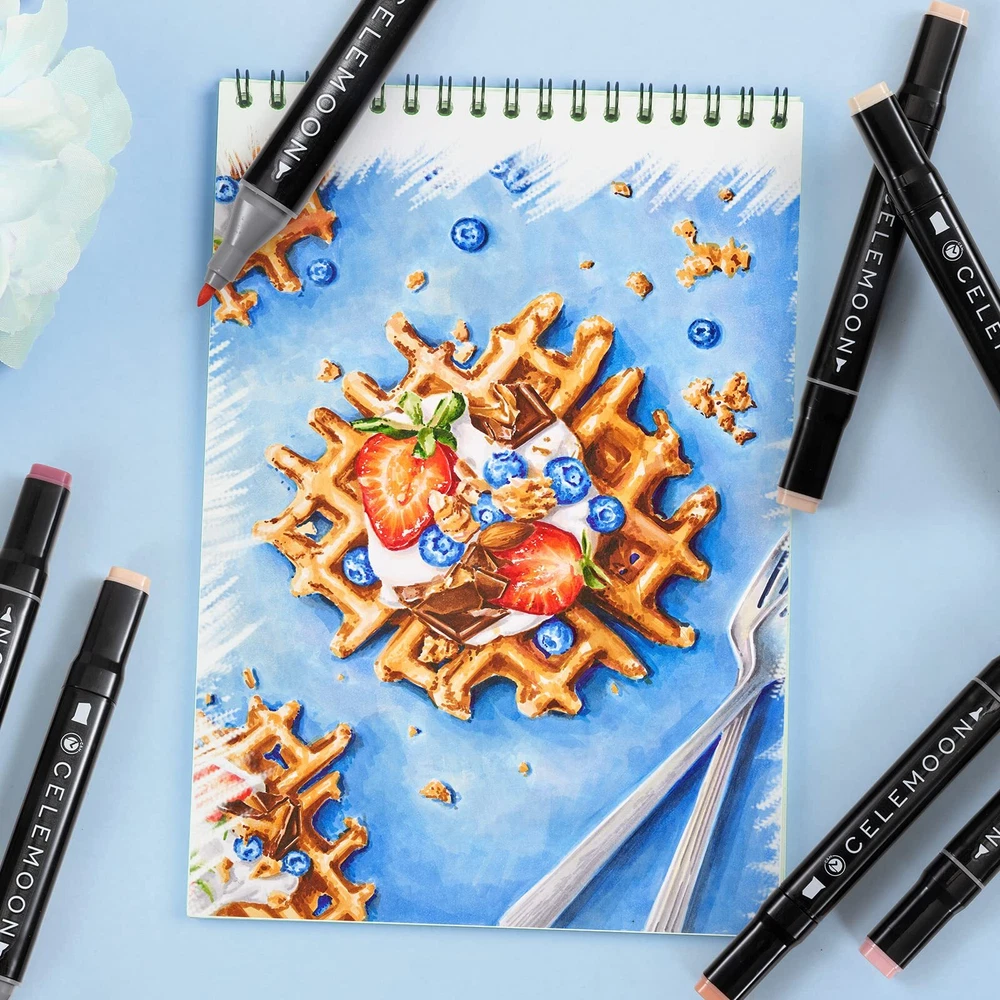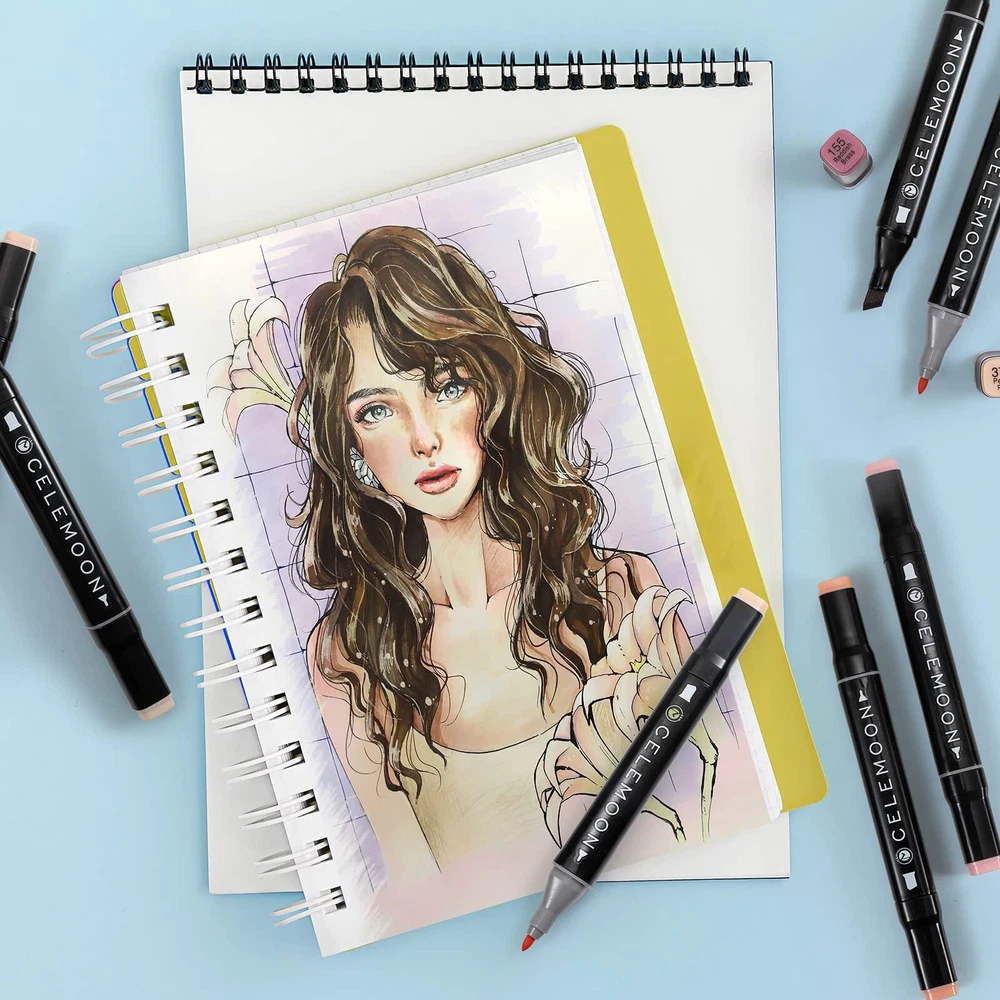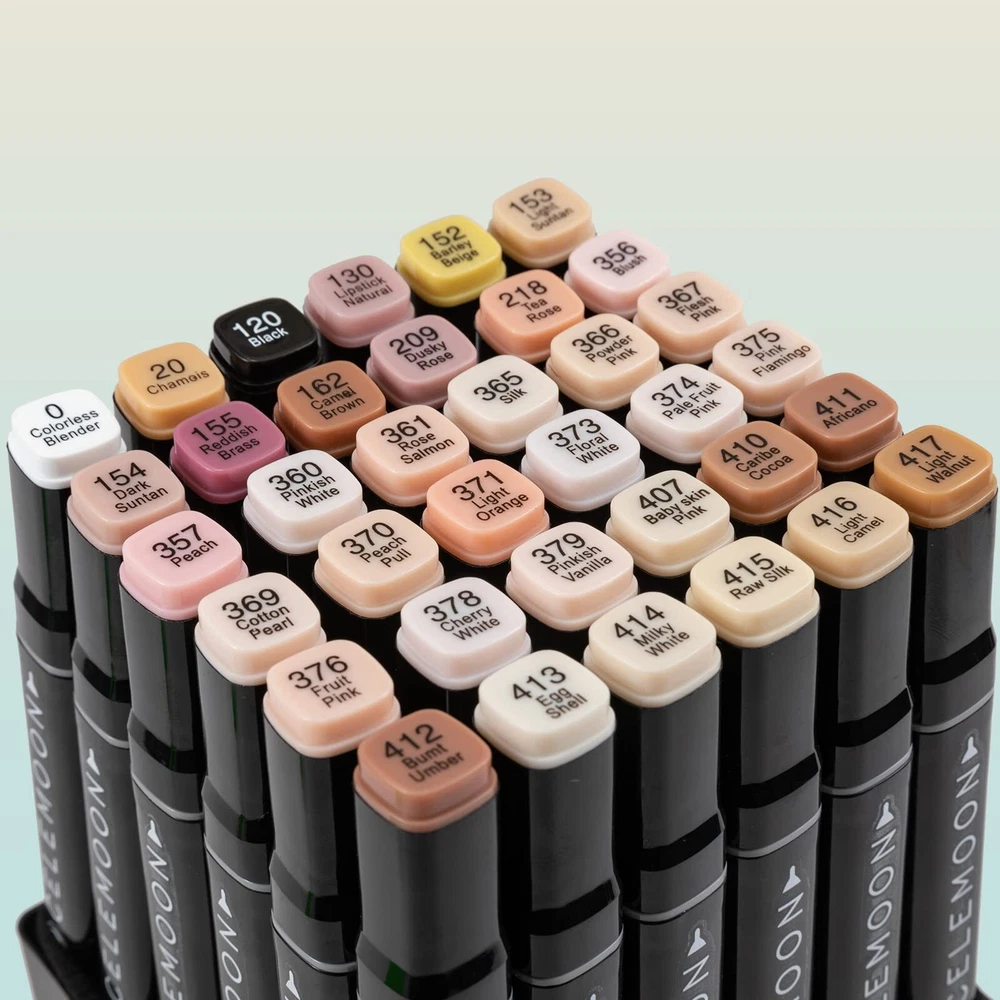 CELEMOON 36 Colors Skin Tone Markers, Upgraded Dual Tip Marker Set with Base , Alcohol Based Art Markers Artist Permanent Sketch Manga Marker Pens whit Case for Portrait Illustration Drawing Coloring Dear Customers, Welcome to ADAXI Art Store! No matter you're an expert or beginner; kids, teens or adults, you're in the right place! And enjoy an awesome shopping with no worry and hurry under our professional and considerate service! Our markers set will enormously help you on your way to be a great artist! Why we are so confident? This is the answer: 1. Quality and professional - only high-quality products are available from us and we're just like you - a big fan of drawing! 2. Serve every customer with all my heart - no matter what issue of your product is, we're here to help! 【36 Skin Tones Colors】CeleMoon Skin color markers write well and blend easily, ideal for flesh& face drawing, hair, portrait, illustration, manga, anime, sketching and other artistic creations. 【Dual Tips & Color Code Caps, Double The Creative】The chiseled tip on one side is ideal for wider strokes and larger area fills, while the medium rounded tip on the other side for detailed work. The color-coded caps allow for ease in organization and to identify colors quickly. 【Easy to mix & Blend】These markers produce a smooth, bold color that is easy to mix or blend. Great for creating a variety of artworks. The high-quality ink blends seamlessly to achieve beautiful coloring effects, even for beginners. 【Durability Art Markers】 These markers are highly pigmented, and the alcohol-based ink dries instantly, especially designed for painting, coloring, sketching, designing, summarizing, explaining and rendering, using these pens for drawing, comics, graffiti, diaries, etc. 【Portable Packing Case】 All the pens stored in a carrying case that has grids with 36 wells to keep your markers organized and portable for any coloring adventure!