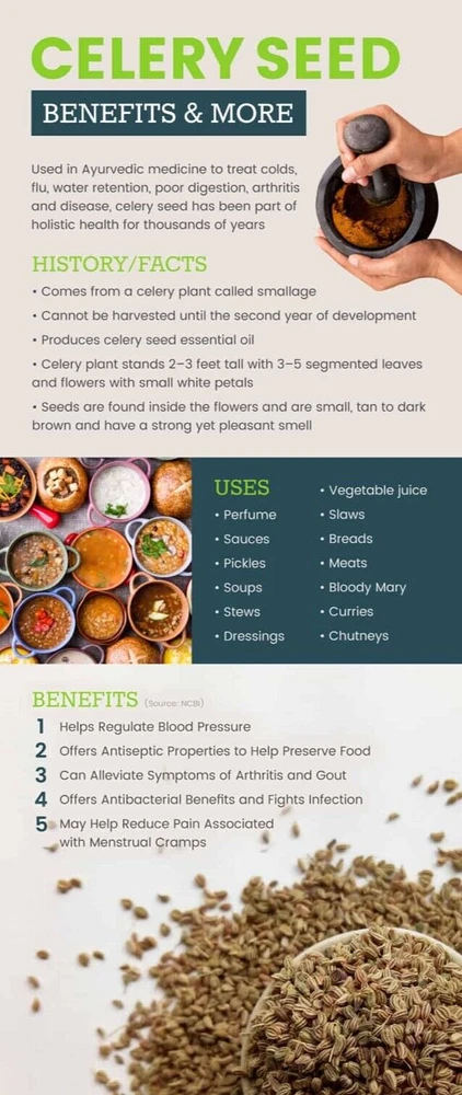 Introducing our Wonderful Premium Celery Seed Powder, a flavorful Concentrated Powder and versatile herbal supplement that packs a powerful health punch! A Classic spice with a salty profile. This all-natural, organic celery powder is just great, derived from celery seed extract, which is highly concentrated to provide maximum potency . Celery seed has long been used in traditional medicine to treat a variety of conditions, including gout, arthritis, and urinary tract infections. It also contains many essential nutrients, such as Vitamin A, Vitamin K, and Magnesium, which can help promote overall health and wellbeing. Celery seed is also known for its detoxifying properties, which can help rid the body of harmful toxins and impurities. And when it comes to flavor, celery seed powder adds a unique and delicious flavor to your favorite dishes. Sprinkle some into soups and stews to give them an extra kick! Fun fact: Did you know that Celery Seed is a great source of antioxidants? It helps fight oxidative stress and free radical damage, which can help reduce the signs of aging. So don't wait any longer - get your Celery Seed Concentrated Powder today and experience the amazing health benefits for yourself! ••• Note: All herbal products are inspected and prepared by Registered Herbalists and Professionals of Herbal Medicine for quality and tested for active compounds. TYPE: Premium Celery Seed (Powdered Concentrate) AMOUNT: Large Pack (56 Grams) HEIRLOOM: Yes 100% GMO FREE: Yes GROWN: USA midwest (Small family farm) PACKAGING: Bulk (Simple) MACHINE FREE: Yes (hand Crafted) CHEMICAL FREE: Yes CLEAN: Yes VEGAN: Yes, no animal products of any kind Check out the other awesome medicinal herbal botanicals! We have a wide selection for all your herbalism needs. We have other sizes as well. Highest Quality Available. Ask, and we can make a custom listing for you as well. HERBAL DISCLAIMER : The medicinal herbs offered for sale on this website are not intended to diagnose, treat, cure or prevent any disease or health condition. The information provided is meant for educational purposes only and should not be used as a substitute for medical advice or treatment. Legally only a pharmaceutical can claim this. If you are currently taking any medications, consult your doctor prior to purchasing any of our products. If you experience any adverse reactions after using these products, discontinue use immediately and consult a physician. Buyer assume all ricks associated with item purchase, and we will be in no way be held responsible in any manner. Pregnant or nursing women or if you are on any medication should also be researched. FREE First Class Shipping Policy: Tracking included 1. Celery Seed Benefits 2. Celery Seed Uses