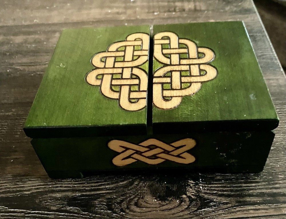 Material: Wood Country/Region of Manufacture: Poland Care Instructions: Clean with Damp Cloth Theme: Mystical Customized: No Handmade: Yes Original/Reproduction: Original Collection: Keepsake Boxes Style: Celtic Type: Trinket Box Subject: Celtic Knots Features: Boxed Number in Pack: 1 Department: Adults Occasion: All Occasions Pattern: Celtic Knot Shape: Square Room: Any Room Time Period Manufactured: 2020-Now