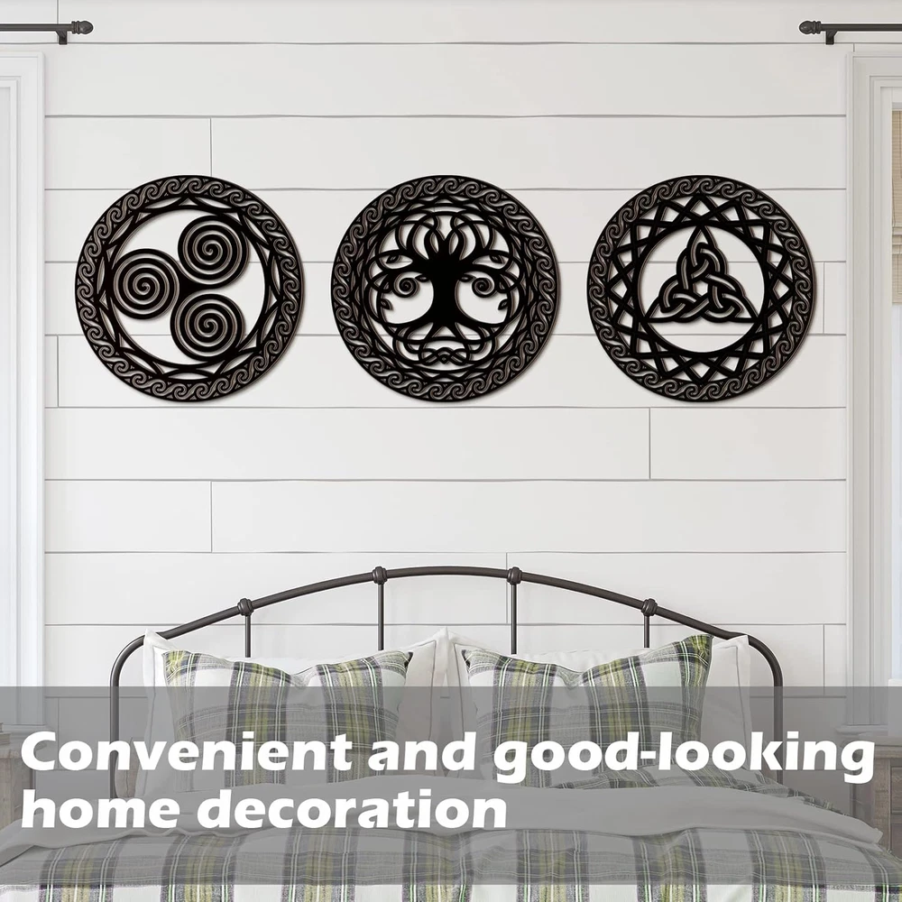 Proper Size: each sacred geometry wall art measures approx. 11.8 x 11.8 x 0.2 inches, proper in size and light in weight, will not take up too much space; The elegant wall decors can add warm atmosphere to your home Novel and Exquisite Design: these wood wall arts adopt Celtic symbols design, which is widely regarded as one of the oldest surviving Irish symbols, look novel and exquisite, these laser cut geometric patterns can better attract people's attention Reliable and Long Lasting: the wooden wall art decor is made of wood material with smooth surface and fine workmanship, tear and wear resistant, the classic color can also match well with any interior style Suitable for Many Occasions: you can use the Celtic wall arts to decorate your kitchen, living room, bedroom, bathroom, office, coffee shop and more, you can also hang them on the wall, door, window or fireplace; These wall art decors can add elegance to your room Meet Your Decorative Needs: this package comes with 4 pieces Celtic wall decors in 4 styles, the quantities and styles are sufficient that can better meet your home decorative needs; You can also share them with your close friends Features: Housewarming gifts: You can apply the wooden Celtic decors as housewarming gifts to send to your friends, neighbors, relatives or colleagues, people will feel happy after receiving them. Match well with other decors: Our Celtic decor wall art applies classic and delicate, can also match well with other decors in your home and leave a deeper impression on guests. Specifications: Material: wood Color: as shown Size: approx. 11.8 x 11.8 x 0.2 inch Package includes: 4 x Celtic wooden wall decors Notes: Manual measurement, please allow slight errors on size. The color may exist a slight difference due to different screen displays.
