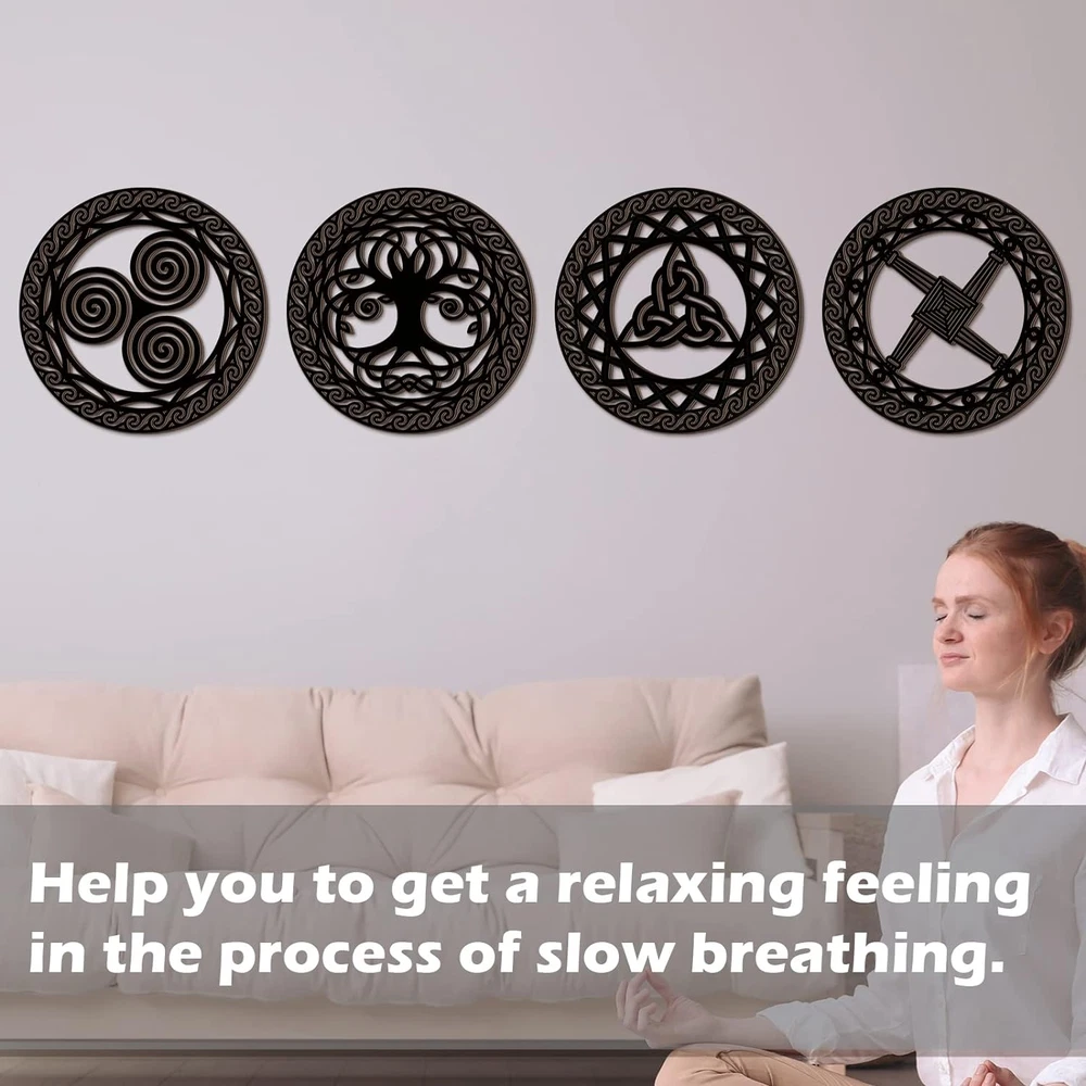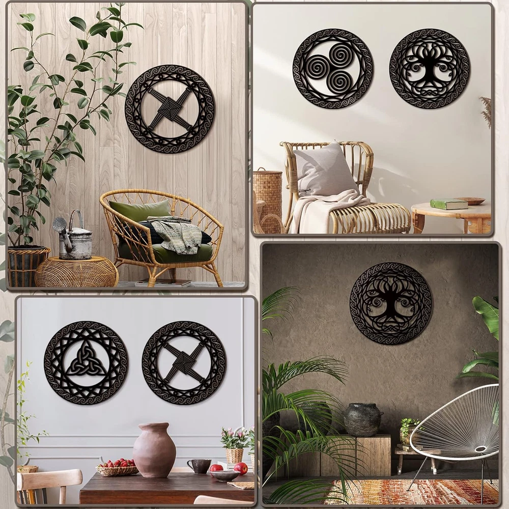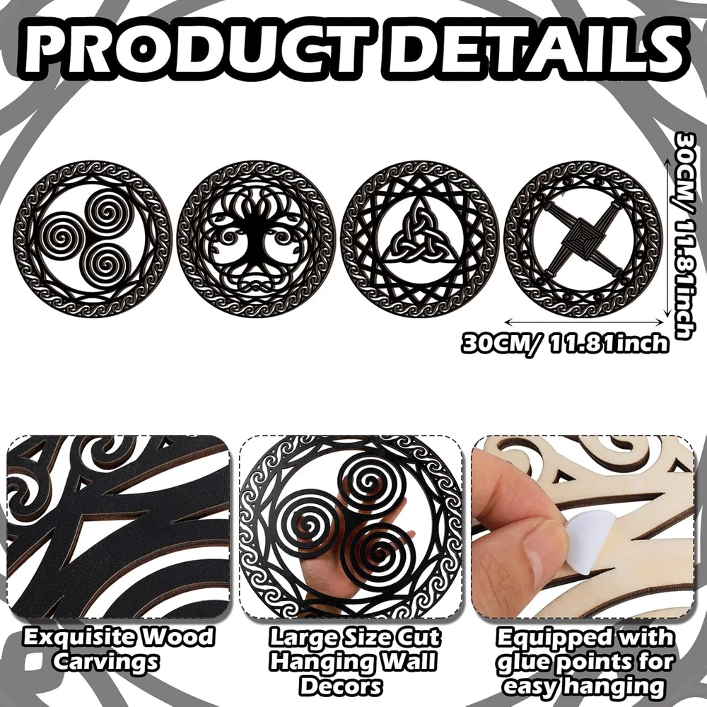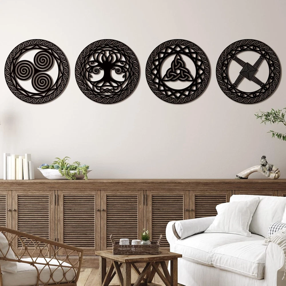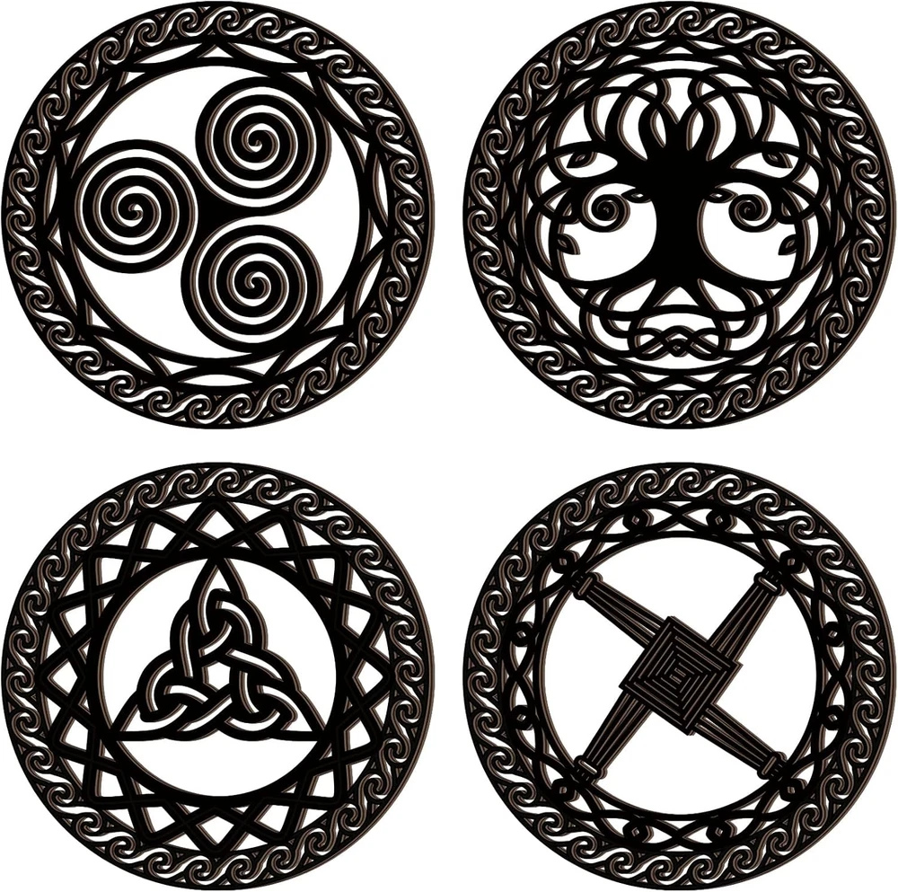 Celtic Symbol Wall Decor 4 Pcs Celtic Cross Knot Triple Spiral Symbol Wood Sign