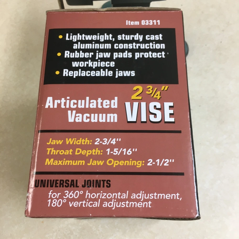 Brand:Cen-Techgtin13:792363033114MPN:03311Jaw Size:2-3/4 inSeller Notes:“Opened box for pictures”Country of Origin:ChinaNumber of Pieces:1UPC:792363033114Model:03311Type:Articulated Vise