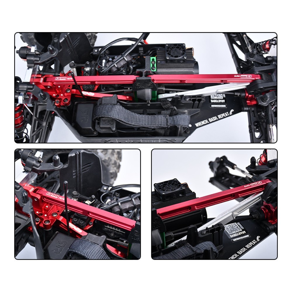 Function & Usage Supports the front and rear chassis to enhance overall vehicle stability and durability. Upgrade Advantages Made of CNC-processed aluminum alloy 7075 for high strength and long-lasting durability. H-shaped structural design provides superior bending resistance and more stable support during high-speed runs and rough terrain. Package Includes Front Brace × 1 Rear Brace × 1 Original Part # ARA320762, ARA320763 Compatibility ARRMA 1/8 KRATON 6S EXB 4X4 RTR BRUSHLESS SPEED TRUCK (ARA8708V6) ARRMA 1/8 KRATON 6S EXB AVC 4X4 RTR BRUSHLESS SPEED TRUCK (ARA8708T1) ARRMA 1/8 KRATON 6S V6 4X4 BLX BRUSHLESS SPEED MONSTER TRUCK RTR (ARA8608V6)
