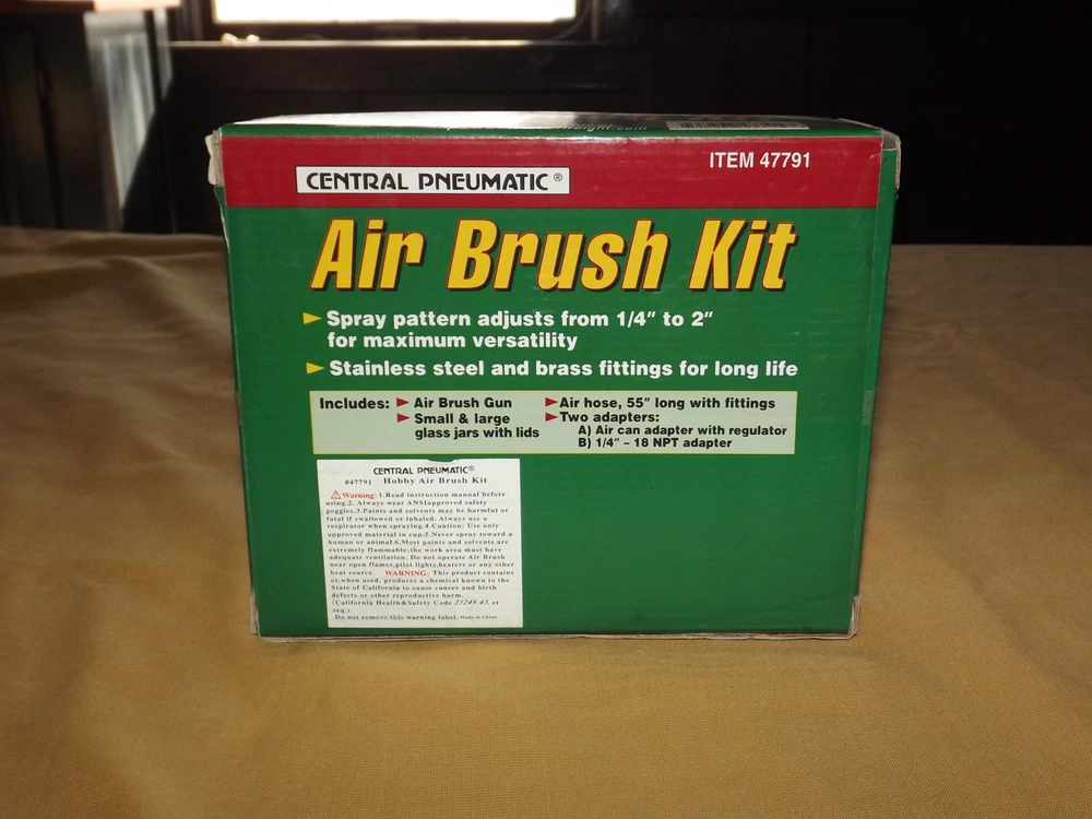 YOU ARE BIDDING ON..... CENTRAL PNEUMATIC AIR BRUSH KIT NEW IN BOX ....... ........PLEASE VIEW PHOTOS FOR CONDITION.***PLEASE E-MAIL IF YOU HAVE A QUESTION OR WANT AN ADDITIONAL PICTURE....PLEASE VISIT MY EBAY STORE FOR ADDITIONAL VINTAGE ITEMS..THANK YOU*** 30-2fl-1612