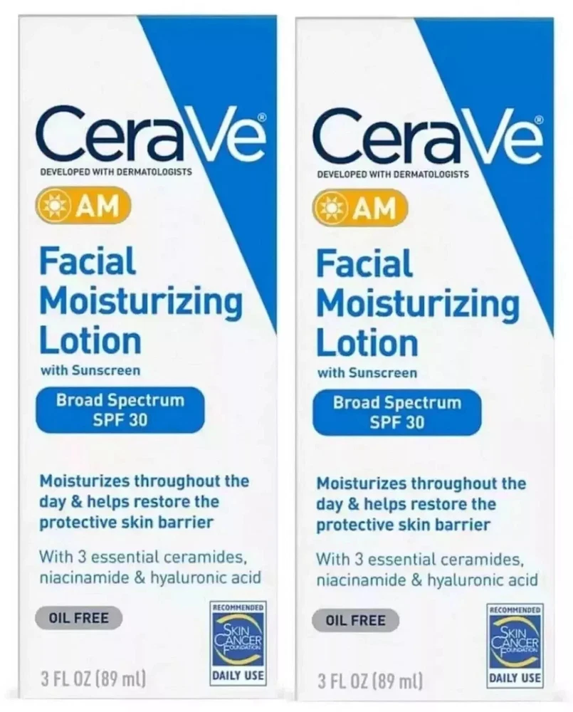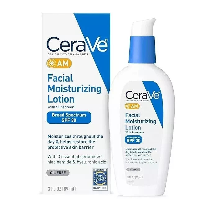 Free eBay listing template designed by dewiso.com CeraVe Facial Moisturizing Lotion AM 3 oz (Pack of 2) About this item: [ ALL-DAY HYDRATION ] Moisturizes throughout the day and helps restore the protective skin barrier [ ESSENTIAL CERAMIDES ] Formulated with three essential ceramides (1, 3, 6-II) that help restore and maintain its natural protective barrier [ PATENTED TECHNOLOGY ] Utilizes patented MVE controlled-release technology to help replenish ceramides and deliver long lasting moisturization [ DRIES WITH A CLEAR FINISH ] InVisibleZinc Technology Micro fine zinc oxide that spreads easily [ WON'T CLOG PORES ] Non-Comedogenic and broad spectrum sunscreen CeraVe Facial Moisturizing Lotion PM helps repair damaged skin and maintain the skin's natural protective function with ingredients not commonly found in other moisturizers CeraVe Repair - Restore - Maintains 30 - SPF 30 sunscreen provides broad-spectrum daily protection against sun's damaging UV-aging and UV-burning rays. When using this product: Avoid contact with eyes. If contact occurs, rinse eyes thoroughly with water.Stop use and ask a doctor if signs of irritation or rash appear and persist. Keep out of reach of children. If swallowed, get medical help . Features: CeraVe AM Facial Moisturizing Lotion with Sunscreen moisturizes throughout the day and helps restore the protective skin barrier. Formulated with broad spectrum SPF 30 sunscreen for daily UV protection. With ceramides 1, 3 and 6-II, niacinamide and hyaluronic acid Oil-free Non-comedogenic Fragrance-free Gentle, non-irritating formula How to Use: Apply liberally 15 minutes before sun exposure. Reapply at least every 2 hours. Use a water-resistant sunscreen if swimming or sweating. Children under 6 months: Ask a doctor Contact us: We can be contacted at any time through eBay messages if you have any questions, comments or product requests. We will respond to you within 24 hours and do our best to help you out! We encourage our customers to contact us with any questions or concerns! We'd like to be sure you are completely satisfied with your purchase. Thankyou for visitin g our store!