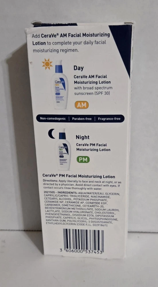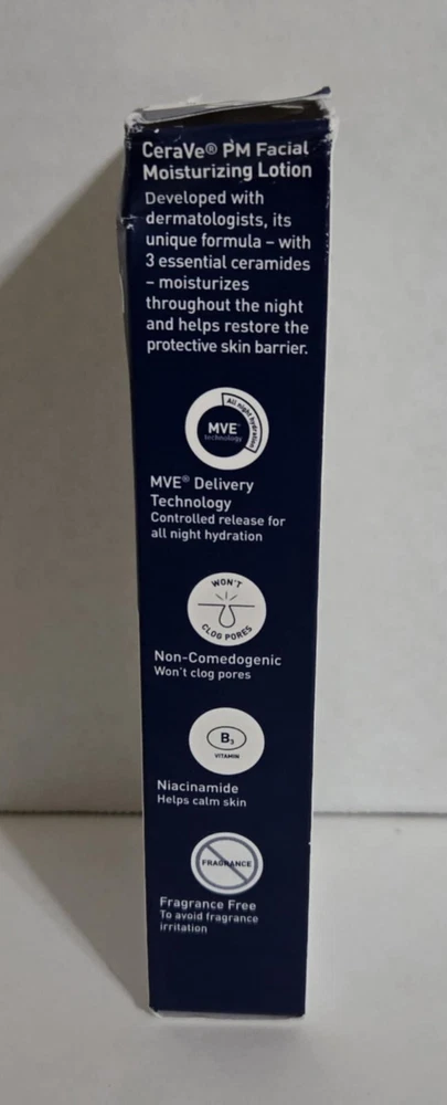 Skin Type: Dry Skin Brand: Cerave Type: Night Treatment Size: Regular Formulation: Lotion gtin13: 3606000537453 Features: Oil-Free Body Area: Face, Neck Department: Unisex Ingredients: Glycerin, Niacinamide, Purified Water, Cetearyl Alcohol UPC: 3606000537453 Volume: 3 Oz Main Purpose: Moisturizer MPN: VALEANT432229, CVE-53745