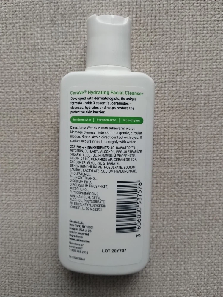 Travel Size Hydrating Facial Cleanser for Balanced to Dry Skin Gentle lotion-based face wash dissolves dirt, excess oil & makeup such as foundation & eyeliner without stripping the skin of essential moisture Provides 24-hour hydration and leaves skin feeling soft and comfortable with a non-greasy feel Ideal for sensitive and dry skin Suitable for the face, body and hands Helps restore the skin's protective barrier with ceramides Helps attract moisture to the skin with hyaluronic acid Travel size, under TSA liquid limit Non-drying and non-irritating Non-comedogenic Accepted by the National Eczema Association Developed with dermatologists View more great items Track Page Views With Auctiva's FREE Counter