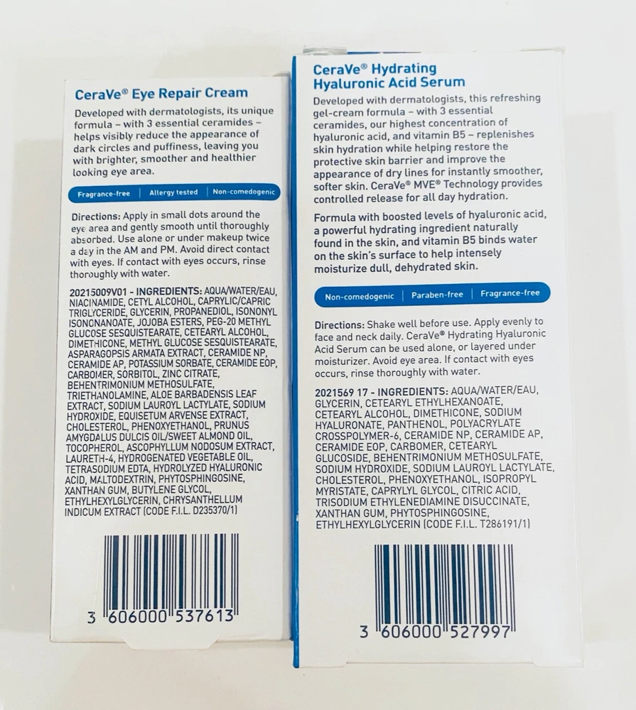 CeraVe Hydrating Hyaluronic Acid Face Serum 1oz & Eye Repair Cream .5oz Both Skincare Products come in Full Size New & Factory Sealed