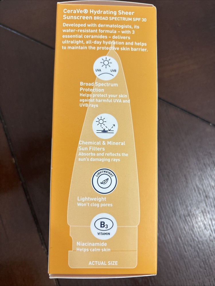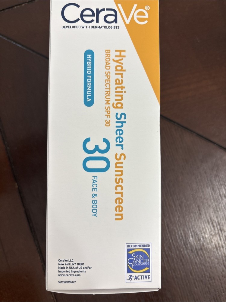 CeraVe Hydrating Sheer Sunscreen SPF 30 Face & Body 3oz 89ml