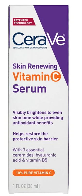 CeraVe Skin Renewing Vitamin C Serum is formulated with 10% pure vitamin C (L-ascorbic acid) to help visibly brighten your complexion and support soft, radiant, and healthy-looking skin. Made For: All Skin Types Helps With: Skin Brightening Product Details Vitamin C is a potent antioxidant that helps defend against free radicals. When used consistently, a face serum with vitamin C can play a powerful role in your anti-aging skincare regimen by delivering skin-brightening benefits and improving the appearance of fine lines, dark spots, and uneven skin tone. CeraVe Skin Renewing Vitamin C Serum is formulated with 10% pure vitamin C (L-ascorbic acid) to help visibly brighten your complexion and support soft, radiant, and healthy-looking skin. Our gentle, yet effective lightweight vitamin C serum with three essential ceramides also helps to restore your protective skin barrier, and includes moisturizing hyaluronic acid , and soothing vitamin B 5 (pantothenic acid) to help improve skin hydration. Plus, MVE technology continually releases moisturizing ingredients for all-day hydration. Suitable for all skin types—including sensitive skin —this antioxidant serum comes in protective packaging to help prevent oxidation and maintain product performance. Allergy-tested
