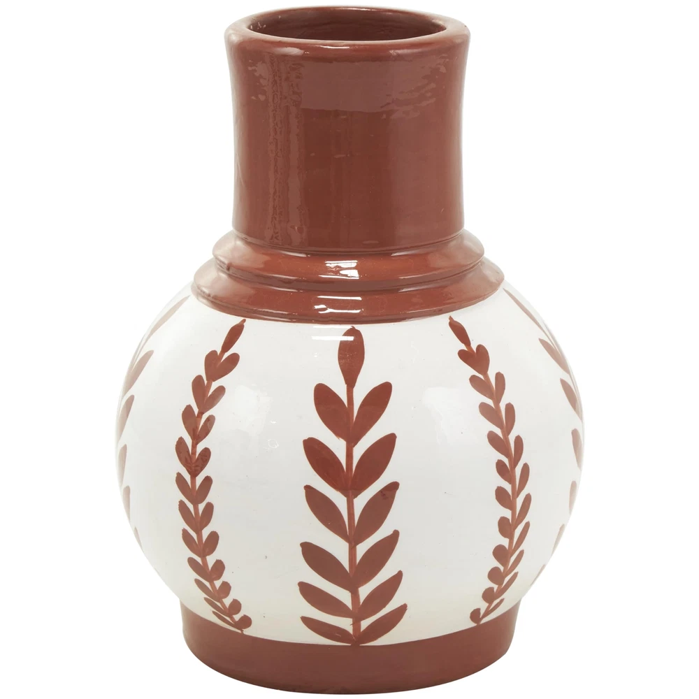 Ceramic Floral Decorative Vase Centerpiece Vases with Terracotta Colored Deta...