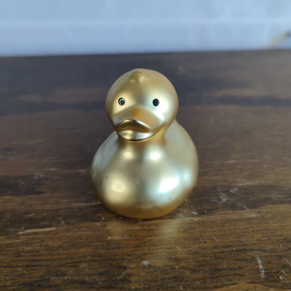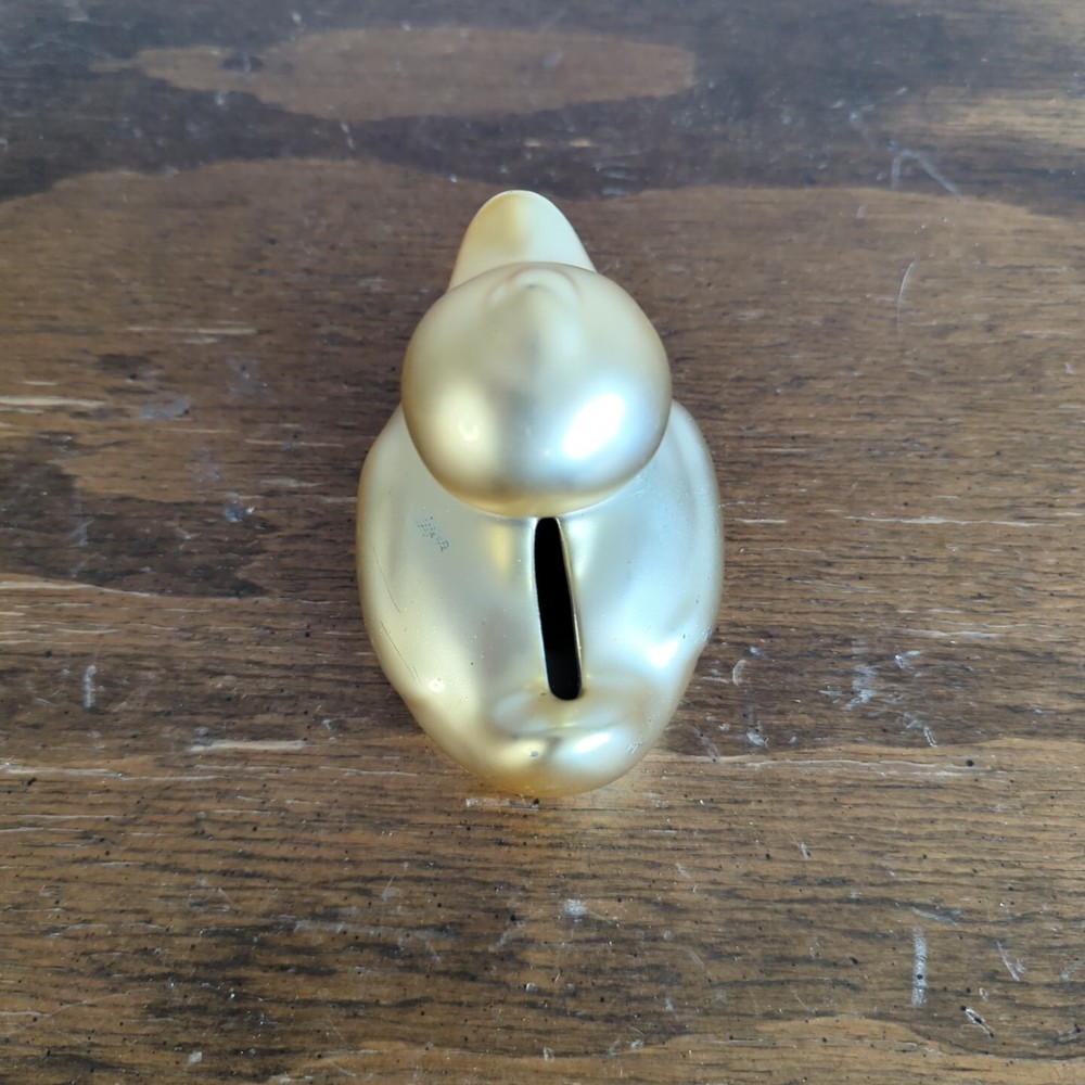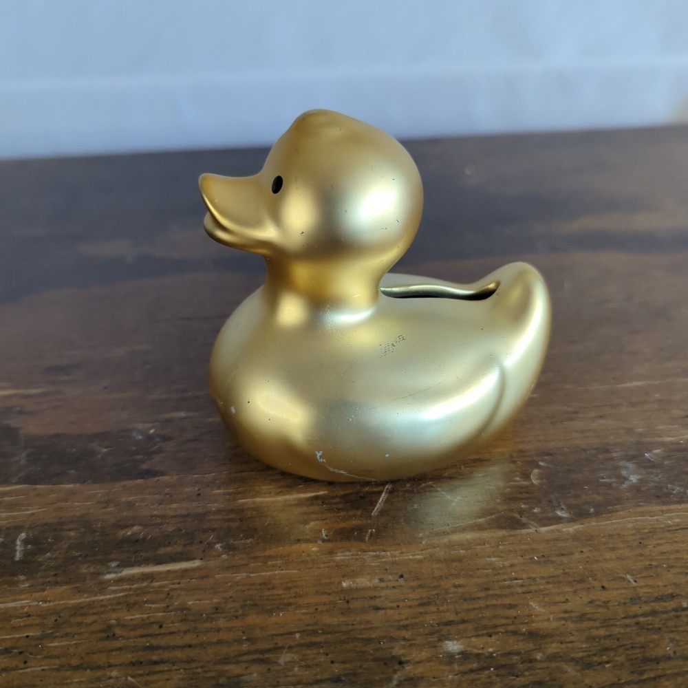 This adorable ceramic duck bank is a charming addition to any room! The gold finish gives it a fun, playful look, and the rubber stopper keeps coins secure. It has a few minor scuffs, but they don’t take away from its cute design. Perfect for kids or as a quirky decor piece!