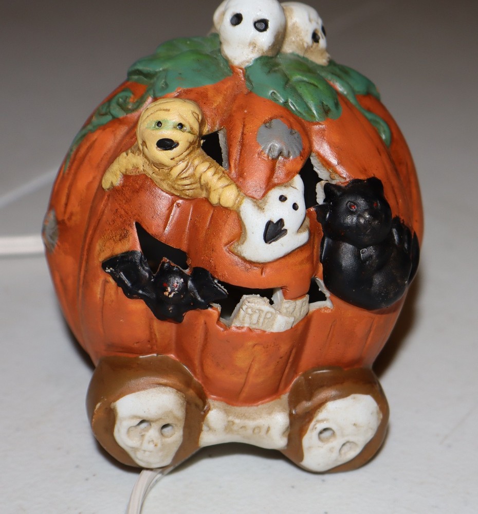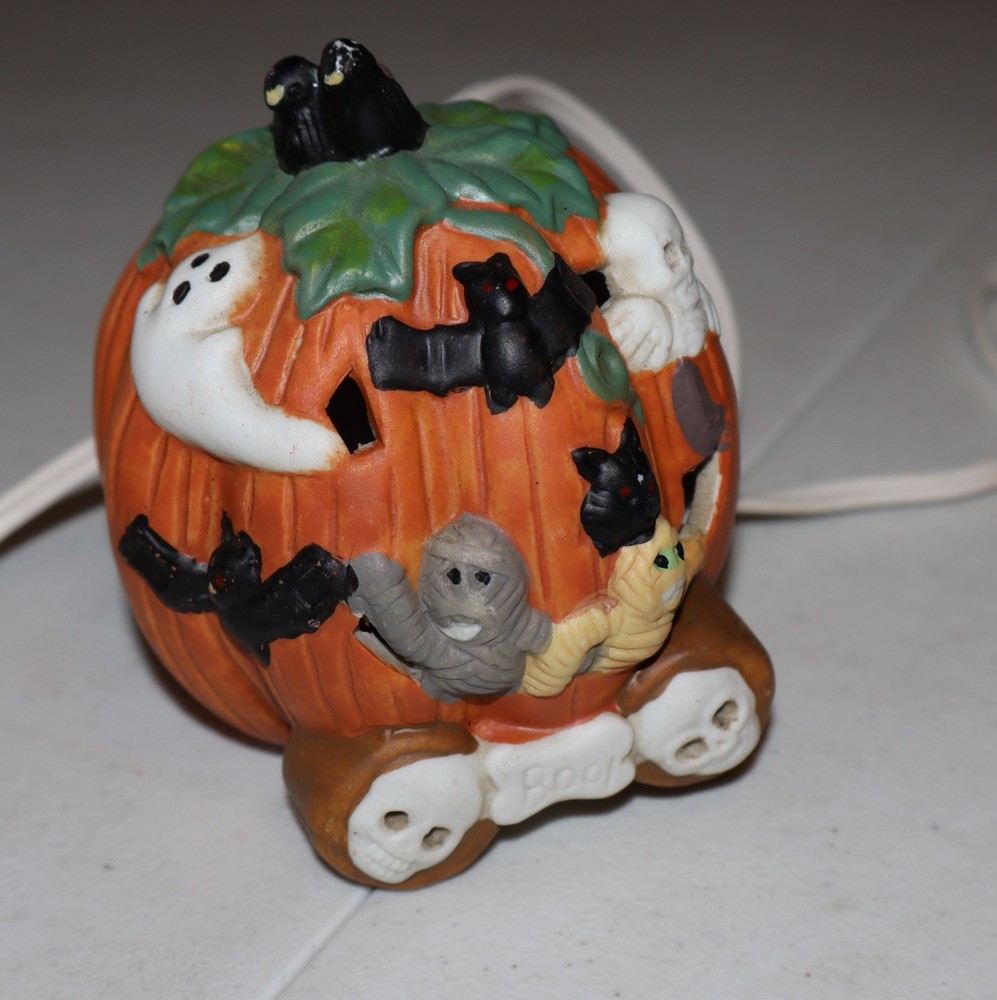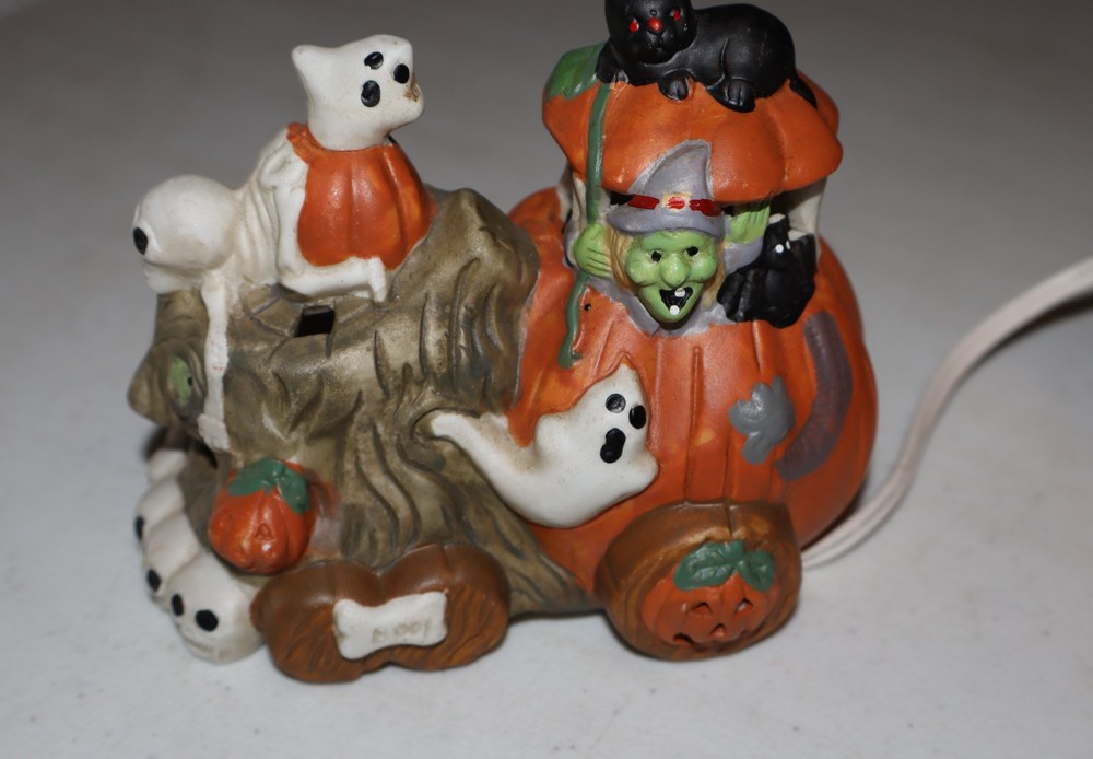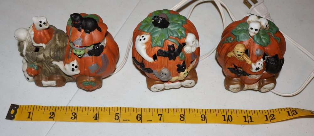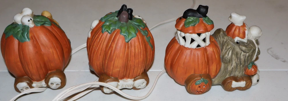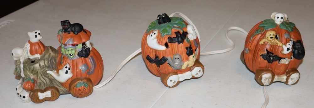 This Ceramic Halloween Jack-O-Lantern 3 Piece Train Set is a festive addition to any Halloween decor. Made of high-quality ceramic, these train pieces feature a spooky Jack-O-Lantern design that will delight collectors and fans of holiday memorabilia. The set includes a light cord for added sparkle, making it a charming display for the Halloween season. Perfect for those who appreciate seasonal collectibles, this train set is sure to bring a touch of whimsy to any home during the holiday.