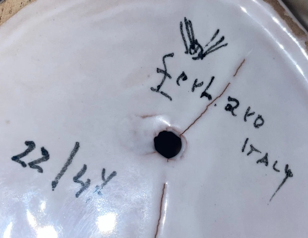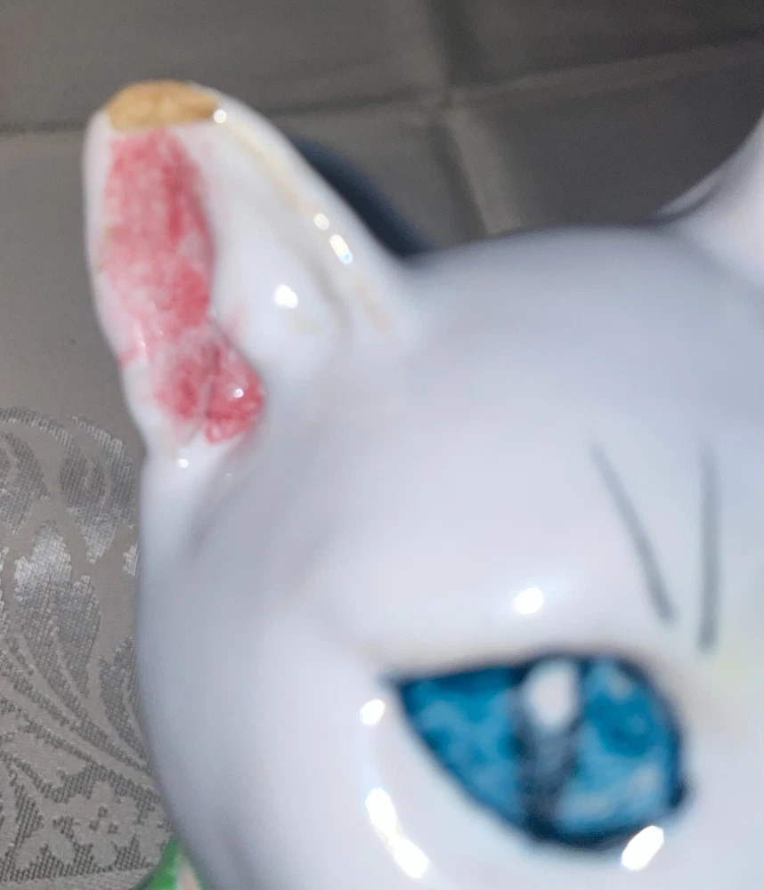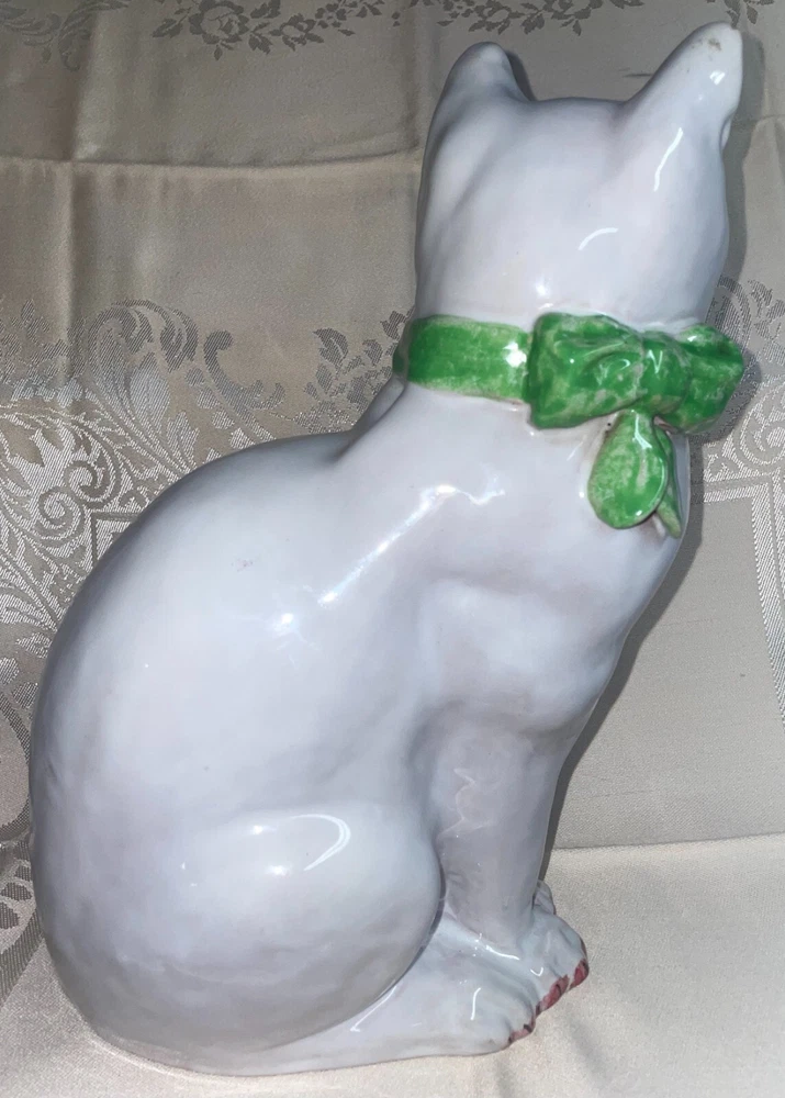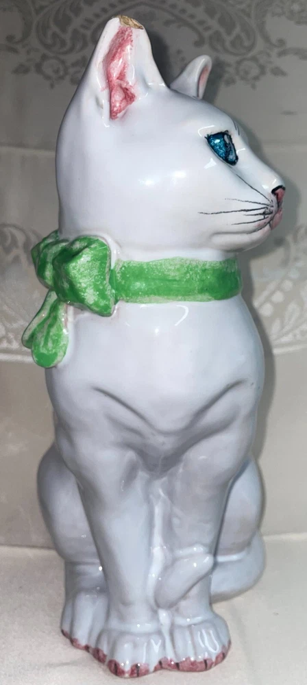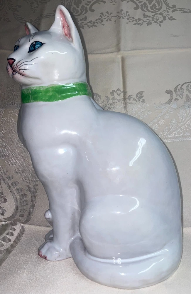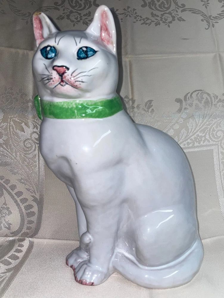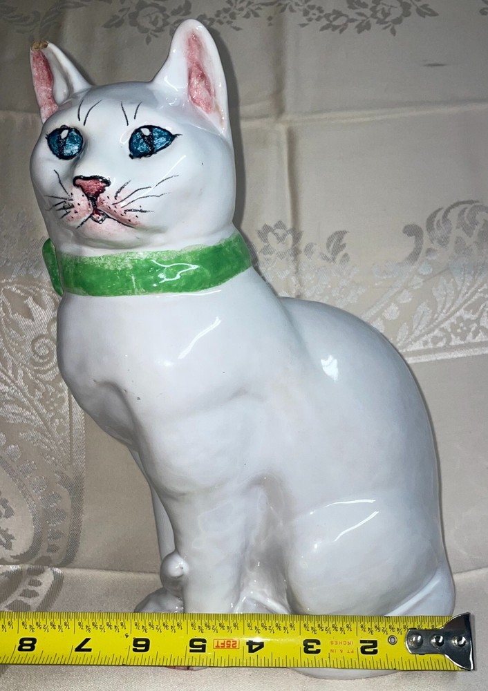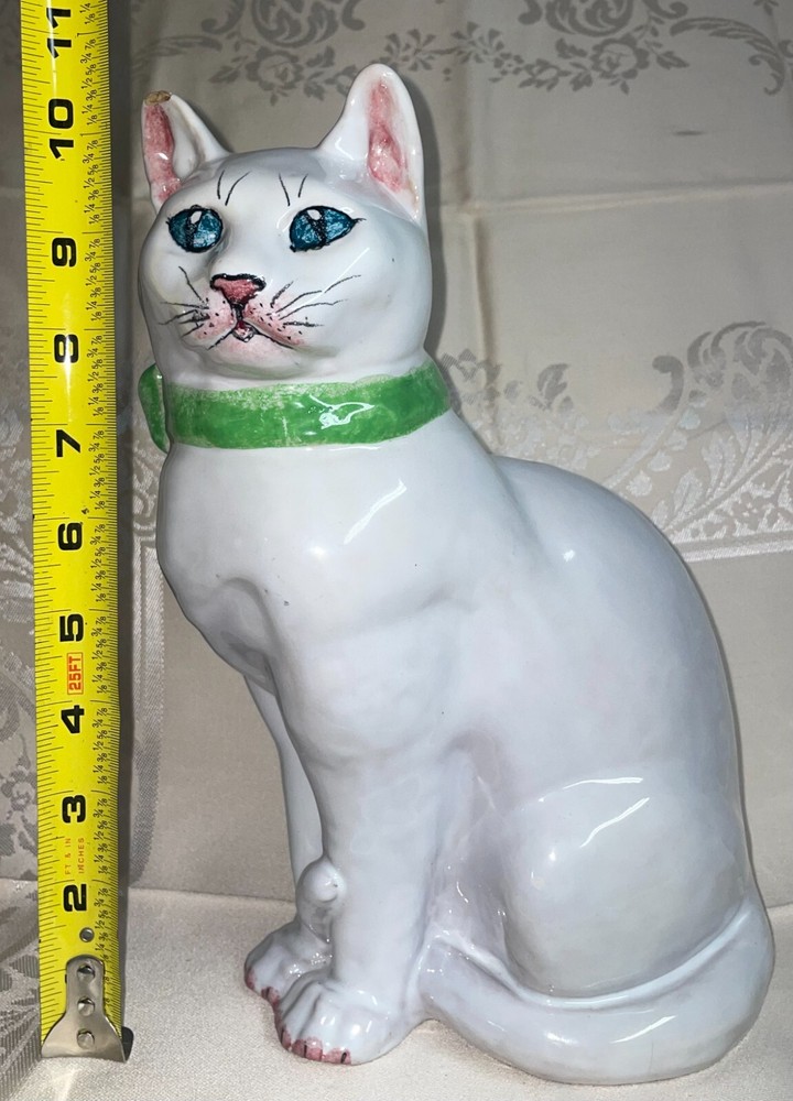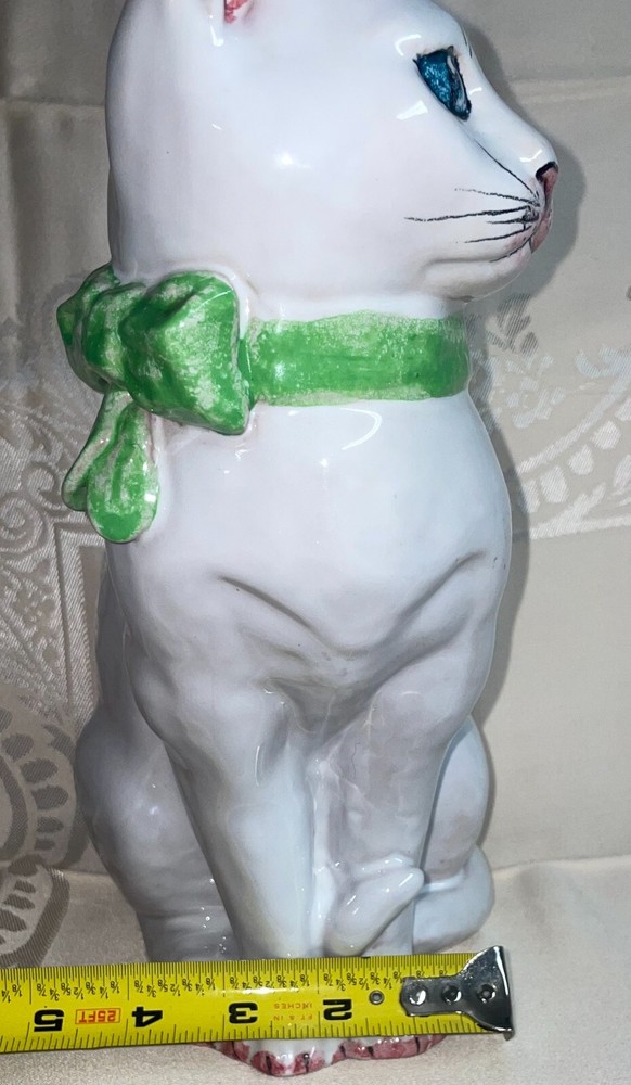 Ceramic 11" Hand Painted Cat Hollow Figure Signed Made In Italy Pre-owned, Last photo shows there is a small chip on right ear, no other issues. Signed, made in Italy. Measures 11 inches high x 6 inches across sitting legs. WE WILL BEAT THE LOWEST PRICE OFFERED ON LINE If you find this item for less (including shipping) offered by another seller on line - send us information that we can verify and we will beat the cost by at a dollar for items totaling up to $25 cost including ground shipping; by 2 dollars for items totaling $25.01 to $50 including ground shipping; by 4 dollars for items totaling $50.01 to $75 including ground shipping; by $7 for items totaling $75.01 to $100 including ground shipping and by $10 for items over $100 including ground shipping. The items compared must be new or in the same condition if previously owned. You will need to send us your zip code so that we can calculate the shipping cost. NOTE: We will make the determination on whether the condition of previously owned or incomplete sets are comparable with what we are selling. SAVE BY USING COMBINED SHIPPING! Per item shipping cost can be substantially reduced by shipping 2 or more items together. If your purchase more than one item the shipping savings will be credited to your account when your mailing label is printed. Your savings can be estimated if you send us your zip code and a list of what you want to purchase. Some items are not suitable for combined shipping due to their size and/or how fragile they are.
