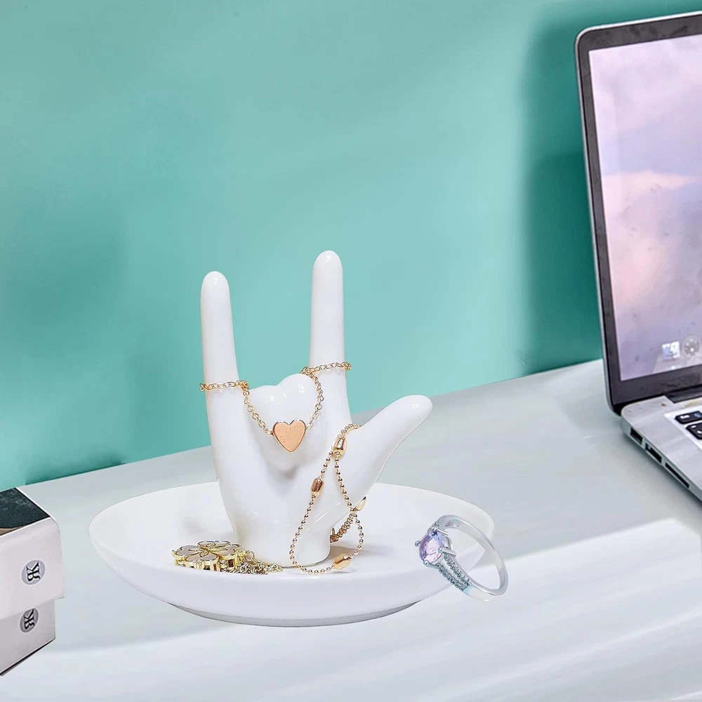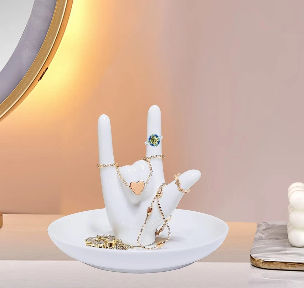 Ceramic Hand Ring Holder Dish Jewelry I LOVE YOU Hand Sign Gifts Ring Display
