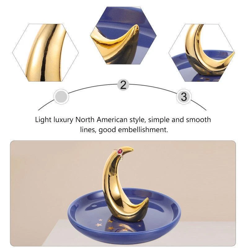Free and fast shipping , shipping take up 1-7 Business Days 30 Day Return Accepted EASY PAYMENT via PayPal, Credit Card, PayPal Credit, Google Pay... Tray Jewelry Dish Moon Organizer Ceramic Necklace Stackable Small Multicolor Description This jewelry dish is made of ceramic with excellent craftsmanship, designed with delicate golden moon pattern. This is a exquisite trinket dish. Made from porcelain, this plate is comfortable to use and hold. Perfect for storing or display ring necklace and other jewelry. Features - Material: Ceramic. - Crafted from great quality ceramic, stylish and delicate. - Hold your earring, necklace, bracelet, rings, hair band easily. - Very and multifunctional that can be a decoration on your dresser or a snack plate for party. - Affordable gift for wedding, engagement, Valentines, anniversary, birthday, Christmas or Mother's day. - You can put jewelry stands anywhere, like bathroom and bedroom, or displayed in store as eye-catching decoration. 1 x jewelry tray REVIEWS The product came very well packaged. I'm very happy. thank you for everything. Seller strongly recommended. This is great! I definitely recommend! Product looks amazing Delivery was fast. Excellent seller, great communication. I advise everyone to buy it!