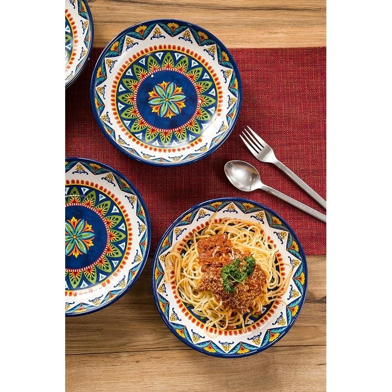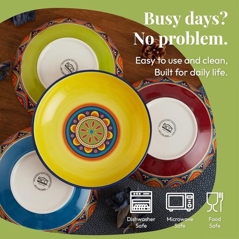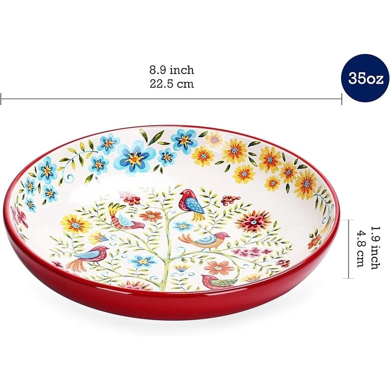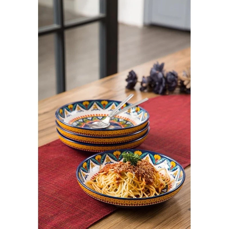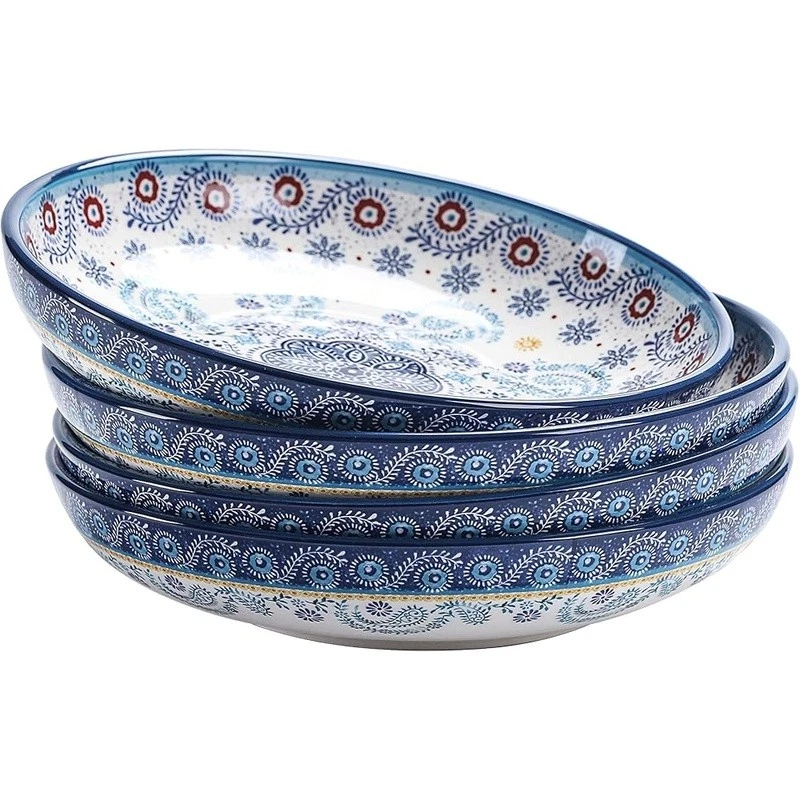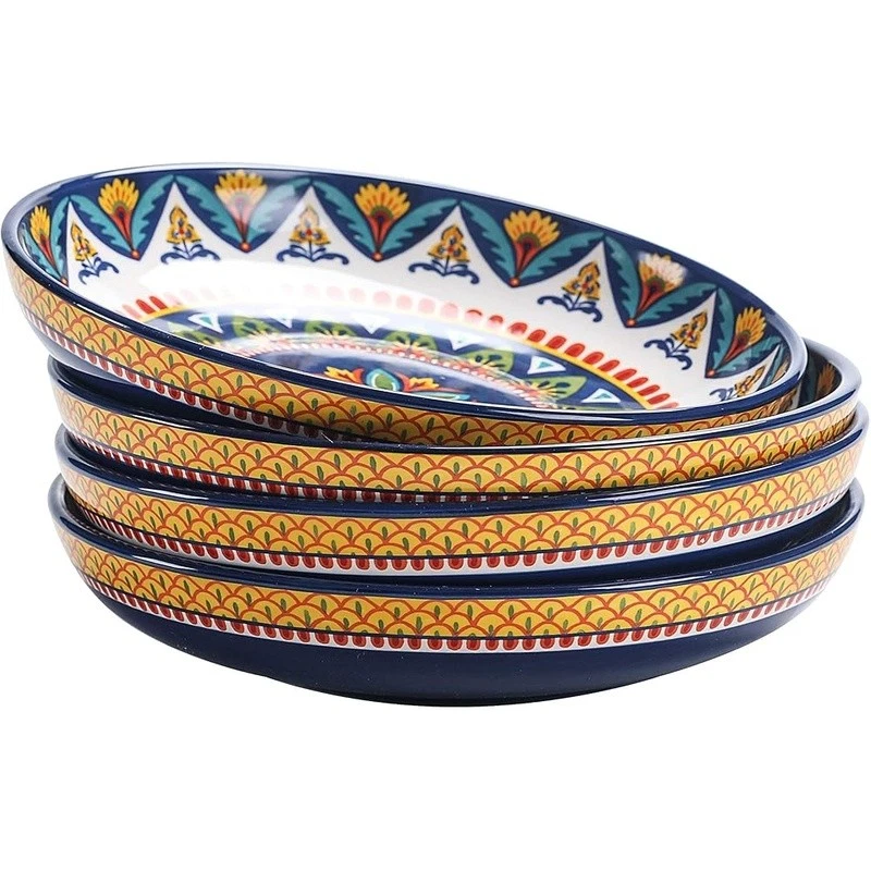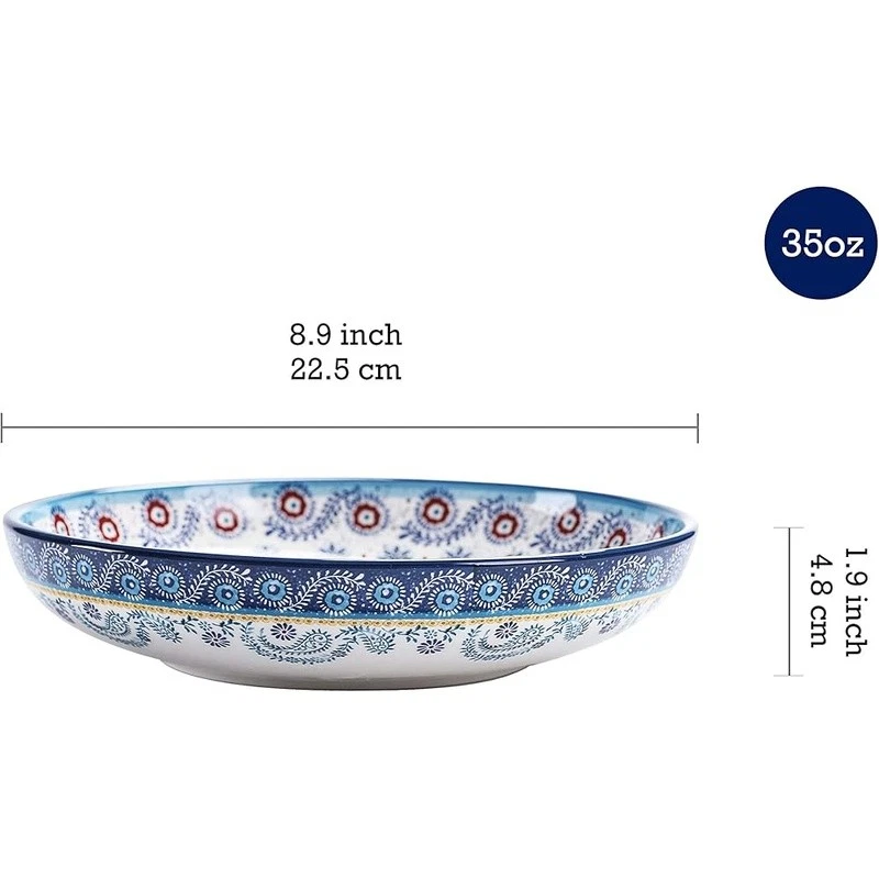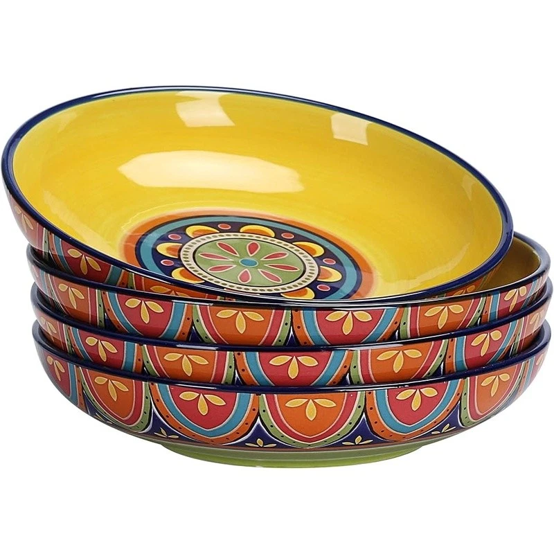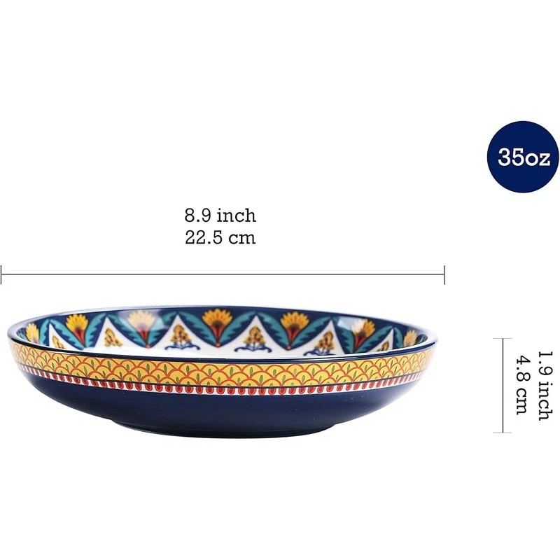 About this item 【Versatile Design】Our pasta bowls set of 4 stand out with a unique design, an original creation by , adding a bold and artistic touch to your dining. Complete your set with matching items like plates, spoon holders, and more from , letting you effortlessly coordinate your entire table with charming pieces. 【Perfect Size】With an 8.9 inch width and 1.9 inch depth, these ceramic bowls are ideal for serving pasta, salads, soups, and more. Their spacious design ensures you have ample room for any meal, making them perfect for everyday use. 【High-Quality Ceramic】Made of lead and cadmium-free ceramic, these bowls are sturdy and safe for everyday use, ensuring an enjoyable dining experience. These shallow bowls are stackable and also make for beautiful decor in your cupboard. 【Gift-Ready Packaging】These beautiful pasta bowl sets are securely packed with styrofoam and placed in cardboard boxes to ensure perfect condition. Whether for a housewarming, Christmas, Thanksgiving, or birthday, they make the ideal gift for anyone who appreciates fine dinnerware. 【Microwave & Dishwasher Safe】These pasta salad bowls are safe for both the microwave and dishwasher, offering convenience without sacrificing style or durability. 's dinnerware makes meal prep elegant and effortless. › Bowl Material: Ceramic Number of Pieces: 4 Brand: Color: Tunisian Style: Tunisian