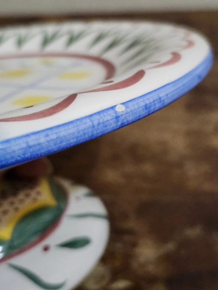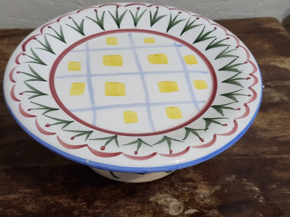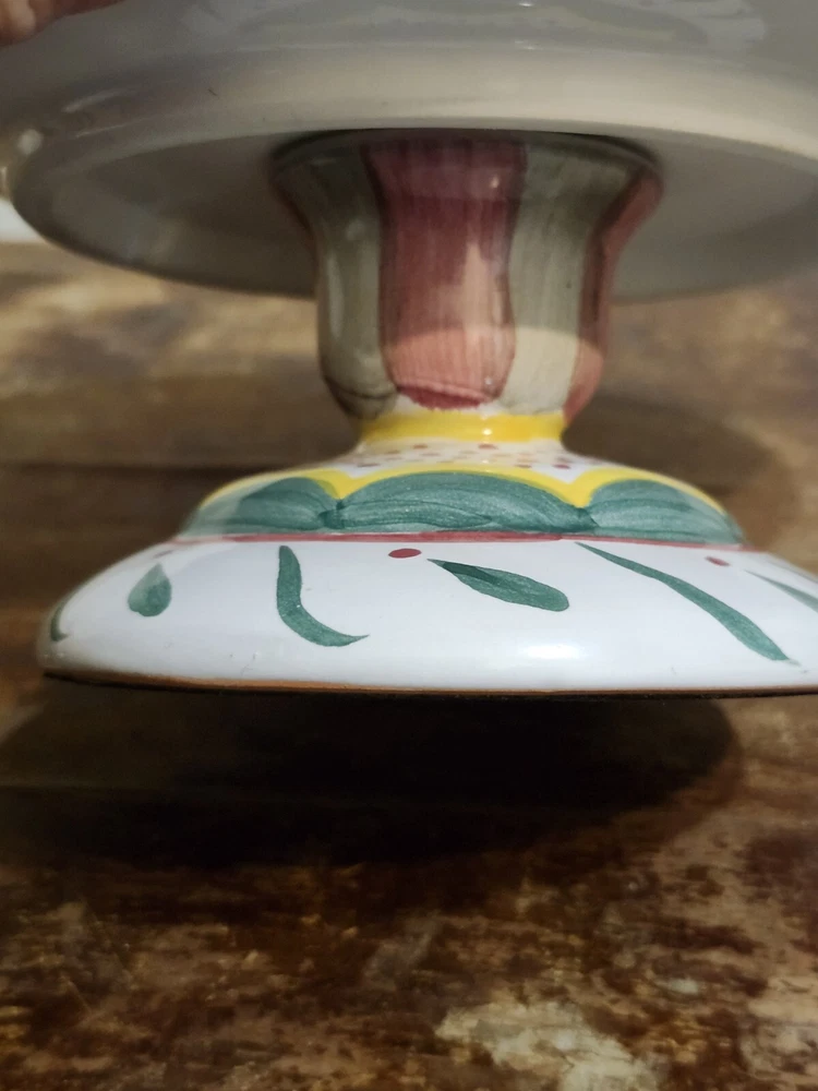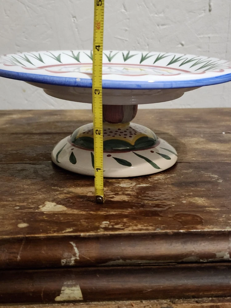 Brand: Unmarked Type: Cake Stand Shape: Round Item Height: 3" Item Width: 8" Material: Ceramic Color: Multicolor