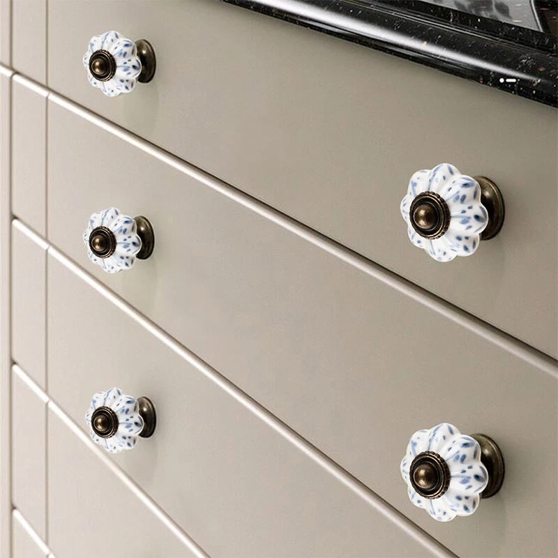 This cute pumpkin-shaped ceramic handle instantly upgrades cabinets with its charming blue-and-white design. The sturdy ceramic and alloy build feels high-quality while the compact size fits most drawers perfectly. Adds a playful yet elegant touch to any room—love how it turns basic furniture into a stylish statement! Arrived safely packaged and was super easy to install.