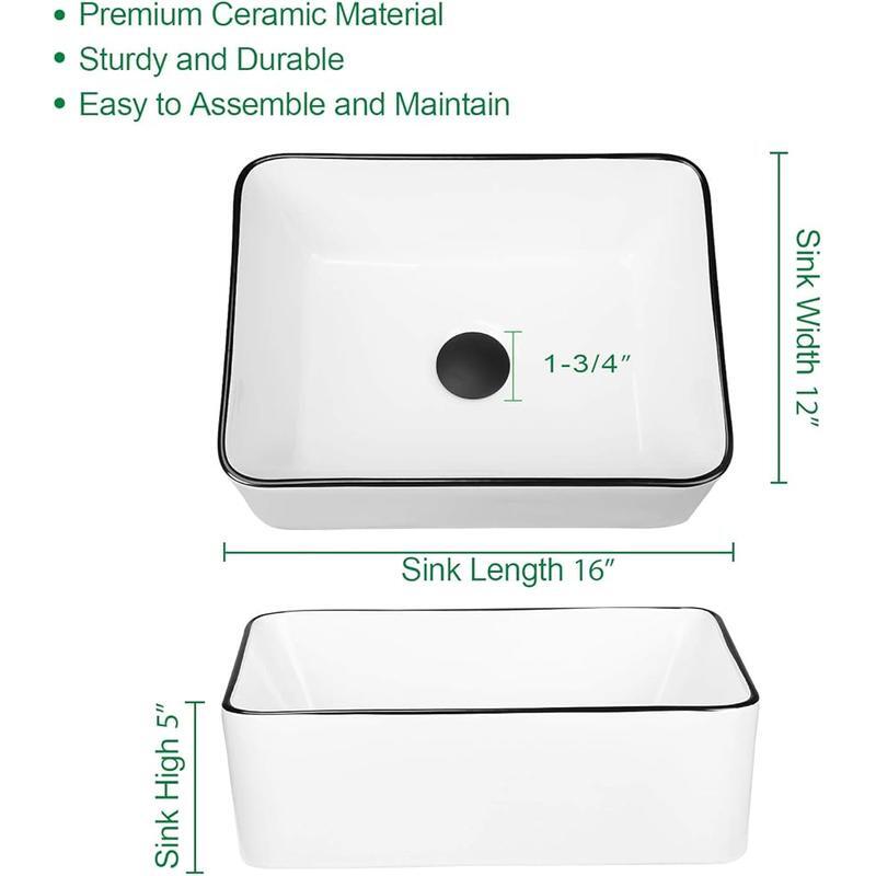 3 Ton Bottle Jack All-in-One 6000 Pound Jackstand Car Lift Heavy Duty Vehicle US 104.49 USD Free shipping Outdoor Freestanding Patio Space Heaters Propane Gas Stainless Steel 48000 BTU 207.18 USD 220.4 USD Free shipping 6% off Flexzilla Garden Hose 5/8 in. x 100 ft., Heavy Dut 70.87 USD 75.39 USD Free shipping 6% off 3 Tier Folding Bookcase Stackable Solid Wood Sturdy Shelves Storage Espresso US 74.82 USD 79.6 USD Free shipping 6% off Commercial Electric Meat Slicer Deli Food Slicer w/ Removable 8.5" Blade Cheese 121.46 USD 129.21 USD Free shipping 6% off 50 Gal Stacker Tote Plastic Storage Boxes Channeled Heavy Duty Latches Bin 3 Pcs 110.55 USD 117.61 USD Free shipping 6% off 3500 GPH 1HP Submersible Water Pump W/ Float Switch Garden Pond Flood Irrigation 62.03 USD 65.99 USD Free shipping 6% off 3 Tier Heavy Duty Utility Cart Wire Rolling Service Cart w/ Handle Bar Shelf New 98.99 USD Free shipping Resin Deck Box Storage Organization Patio Furniture Outdoor Cushions 71 Gallon 74.65 USD 79.41 USD Free shipping 6% off Digital Wall Mount Safe Flat Electronic Anti-Theft Touchpad Home Office Security 143.11 USD 152.24 USD Free shipping 6% off Automotive Marine Battery Charger Waterproof W/ Extra-long cable Fully Automatic 47.42 USD 50.45 USD Free shipping 6% off Rechargeable Lithium-Ion Battery Powered Pump Zero Technology Sprayer 2-Gallon 91.69 USD 97.54 USD Free shipping 6% off About this item STYLISH APPEARANCE: Apply to any bathroom or powder room, constructed of durable and stain resistant ceramic. Fashionable appearance is sure to leave a lofty impression on your bathroom. EASY CLEAN RECTANGLE VESSEL SINK: This versatile sink made from high-quality ceramic that’s extremely resistant to scratches and stains, and will not fade over time. ABOVE-COUNTER SINK: Above-counter design allows you to install your vessel sink without replacing the entire vanity. Brand: KSWIN Color: White Material: Ceramic Size: 16'' x 12'' Product Dimensions: 12"D x 16"W x 5"H You may also like Massage Chairs Comfort Cushion W/ Heat Back Integrated Control Offices Home New 60.9 USD 64.79 USD Free shipping 6% off Cordless Vacuum Cleaner Lightweight 6 in 1 Powerful Suction Self-Standing Vacuum 82.7 USD 87.98 USD Free shipping 6% off Biometric Digital Gun Safe DOJ Certified Quick Access 3 Pistol Lock Box New 57.89 USD 61.59 USD Free shipping 6% off Indoor Marble Pattern Area Rug Stain Fade Resistant Durable Low Profile 5x7 New 76.14 USD 81.0 USD Free shipping 6% off Power Tool Organizer Wall Mount W/ Charging Station Heavy Duty Storage Garage US 71.29 USD 75.84 USD Free shipping 6% off Mini Metal Tool Box W/ 2 Drawers Top Storage PVC Liners Cold Rolled Steel New 41.35 USD 43.99 USD Free shipping 6% off 6 Pack Bed Sheet Organizers Storage Clear Window Handle Linen Closet Space Saver 67.19 USD 71.48 USD Free shipping 6% off Hammered Copper Nonstick Frying Pan W/ Lid Healthy Ceramic Coating XL Skillet US 47.55 USD 50.59 USD Free shipping 6% off Beach Tent Canopy Sun Shade Shelter Automated Installation Cabana Camping Park 88.91 USD 94.59 USD Free shipping 6% off 26-Piece Porcelain Tea Set Ceramic Cups Teapot Vintage Floral Design Ideal Gift 51.68 USD 54.98 USD Free shipping 6% off 360 Degree Swivel Hunting Chair Outdoor Fishing Seat W/ Armrests & Cup Holder US 82.71 USD 87.99 USD Free shipping 6% off 4 Pack Heavy Duty Garage Wall Hooks Tool Organizer Tires Ladders Garden Tools US 41.34 USD 43.98 USD Free shipping 6% off