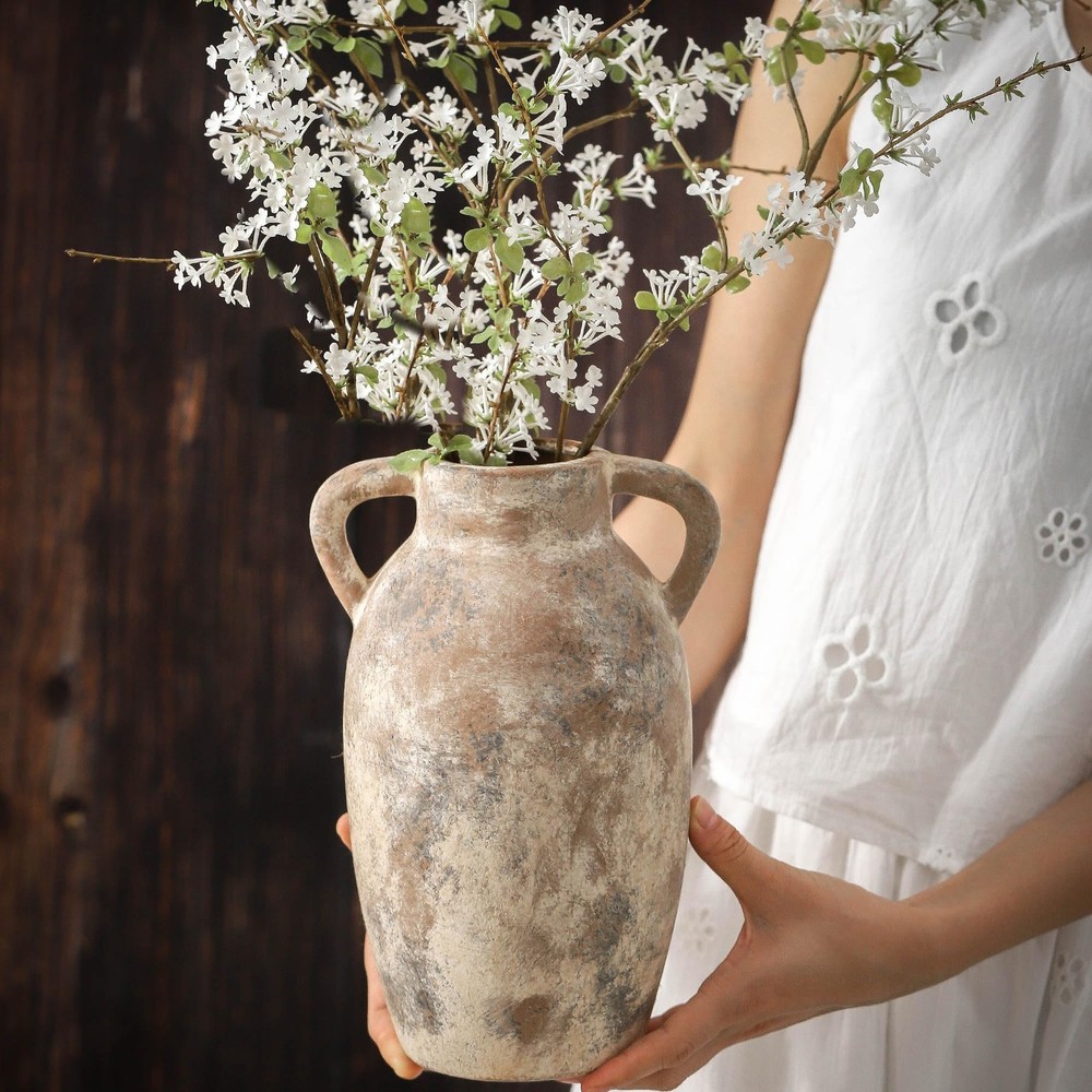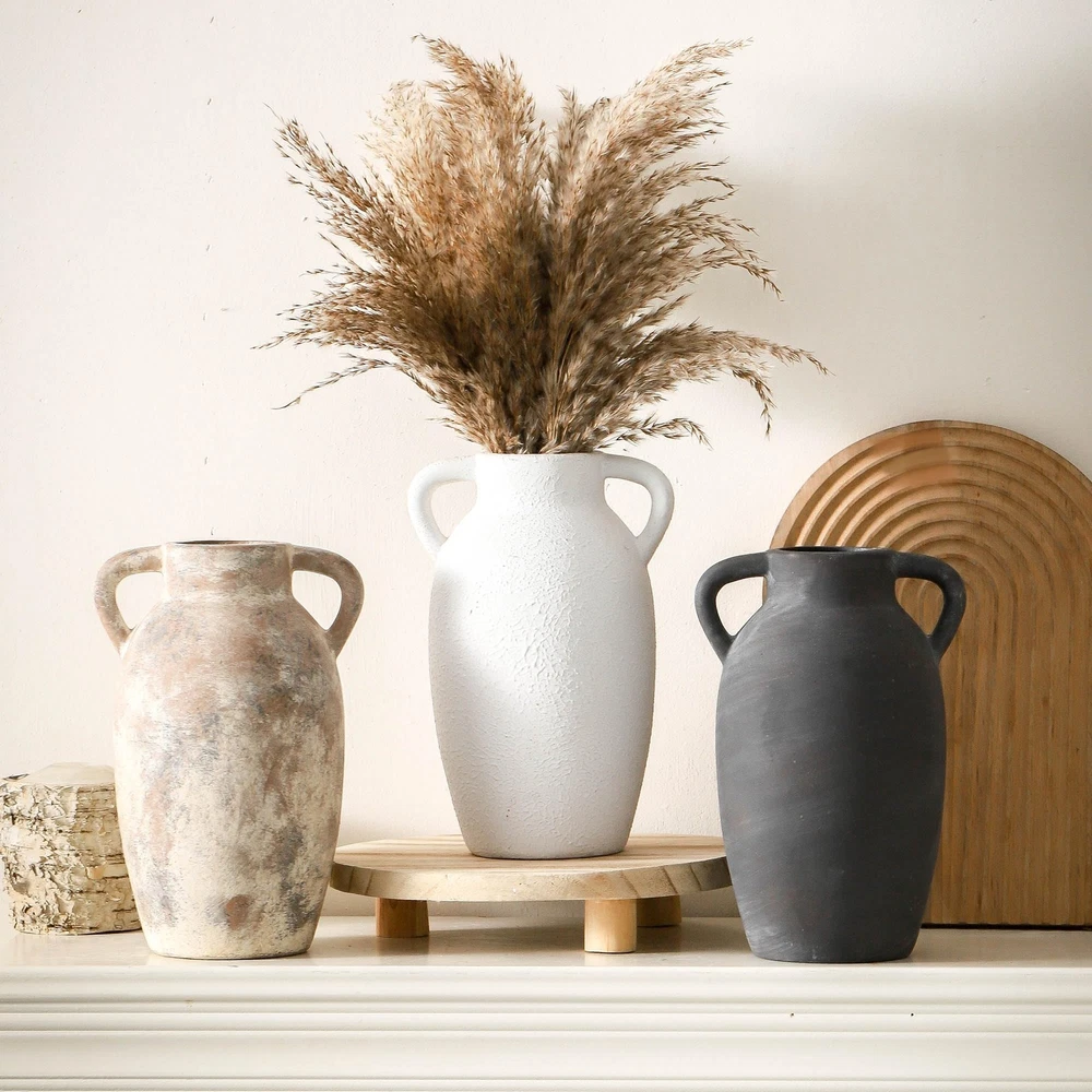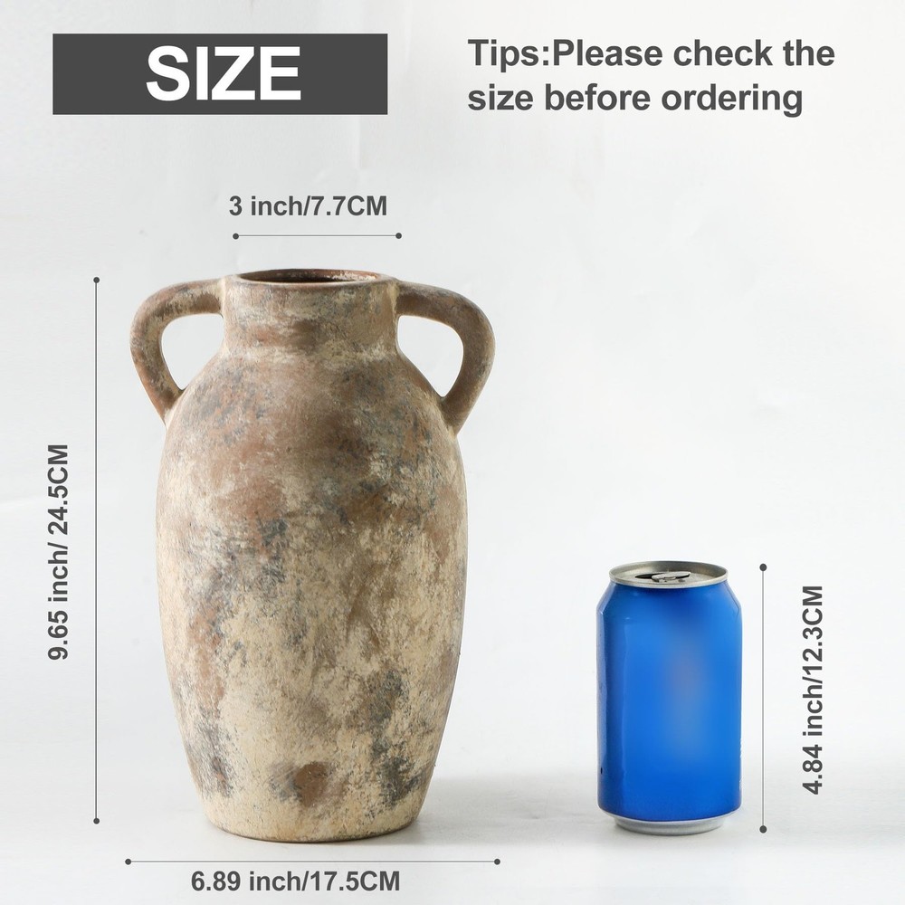 rustic vases The vase is handcrafted from high-quality ceramic with a unique surface, making it has a unique texture—no two are exactly alike. Measurements – The vase measures W 6.89"" X H 9.65", with a 3-inch wide opening. The ceramic vase is meticulously crafted from premium clay and fired at high temperatures for lasting durability. Farmhouse Style Vase – The rustic vase is a charming addition to any home. Ideal for any occasion! Perfect for your living room, kitchen, bedroom, or office, it shines as a centerpiece or on shelves, mantels, and more. Excellent Present – The farmhouse vase is not only a home decor item but also makes a great gift for any occasion. Whether you are looking for a housewarming gift, a bridal, baby shower or anniversary gift, this vase set is the perfect centerpiece for a variety of different occasions and celebrations. Home Decoration – Ceramic vase for decor looks beautiful and fashionable, bring your flowers a beautiful display. Perfect art decoration for bouquet fresh flower arrangements, boho home decor, bookshelf decor, branch roses. 100% Satisfaction – Thank you for choosing . If you have any problems with our vases, please feel free to contact us. We are committed to providing you with a satisfactory solution and your satisfaction is our top priority.
