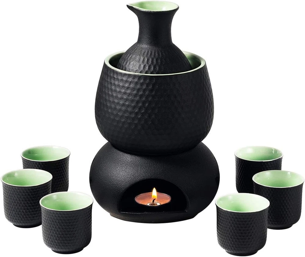 Love this traditional sake set! The anti-skid ceramic surface keeps everything steady while sipping warm sake. Perfect for any season—use hot water or the included candle stove to heat your drink. The elegant black pottery adds a touch of authenticity to each pour. Ideal for enjoying O-Kan Sake at home!