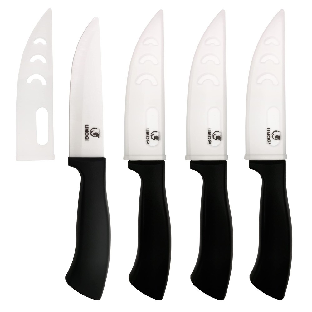 ▶1, ULTRA-SHARP: Ceramic knife is of the sharpest knives on the market and stay sharp for years. For fine, precise cutting. This is 4.5'' LARGE STEAK KNIFE ( a little larger than normal size ), not only for steak & pork chop, but also good for fruit & vegetables, BBQ. Slicing carving knife, UTILITY KNIFE. ▶2, HYGIENIC & RUST-PROOF: When meat, fruit and vegetables are cut with ceramic, the oxidation process is stopped, which means their properties are preserved and they don’t turn brown (as in the case of apples, aubergines, artichoke,etc.). And the ceramic blade won’t change the flavour of the food. More hygienic and safer than other blades and non rust. ▶3, LIGHTWEIGHT: Because they are made of lightweight ceramic, these knives are easy to handle and require less effort. ▶4, EASY TO CLEAN & : Ceramic does not absorb food substances. Just rinse with water and towel dry to keep these knives in perfect condition. After hundreds of strict tests, our ceramic knives can be put into the dishwasher. Although knives can be safely washed in the dishwasher, hand wash is recommended. The blade is protected by sheath, easy to and carry. ▶5. Experience the Difference. If you are tired looking for gift ideas, you might like to try this colorful steak knife set. Young Fashion Style. This set is a wonderful gifts for your husband, wife, mom, dad, grandma and friends who enjoys cooking or eating steak. We stand behind our dinner knives set with a 100% SATISFACTION OR MONEY BACK , try it risk free.