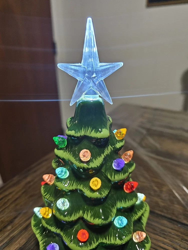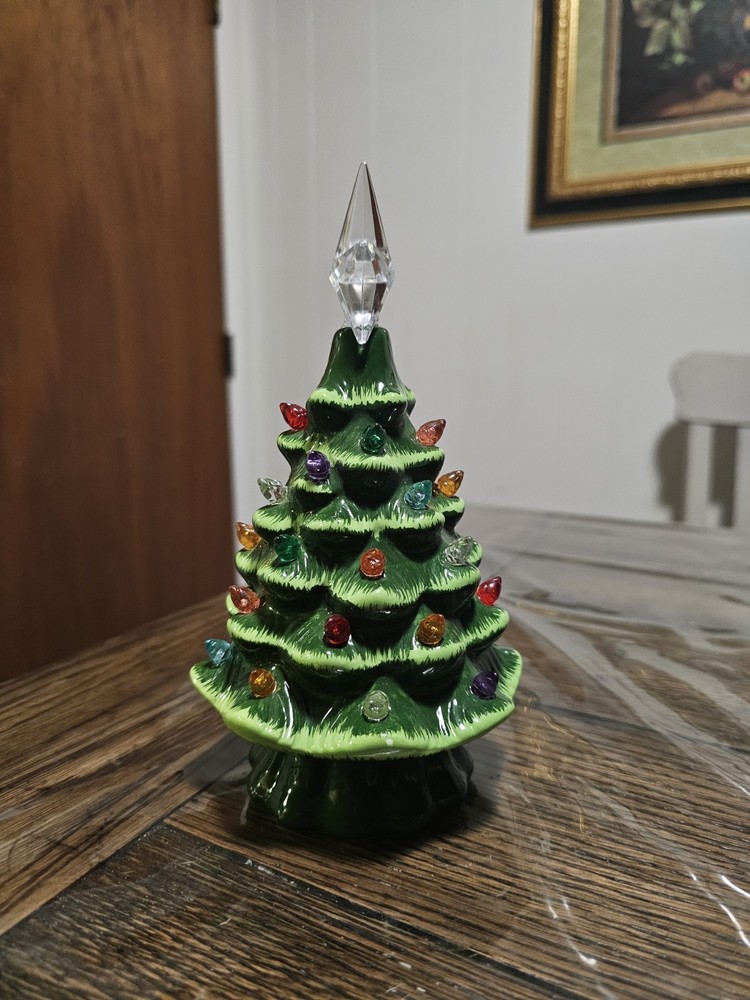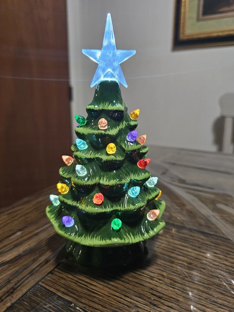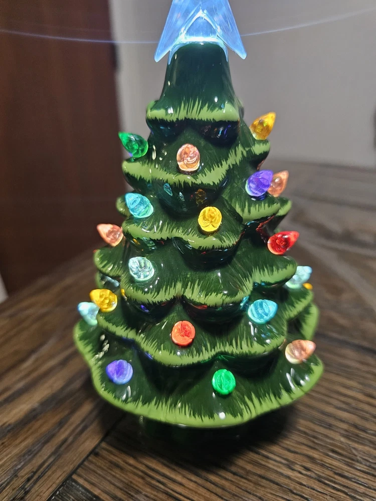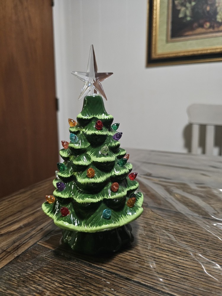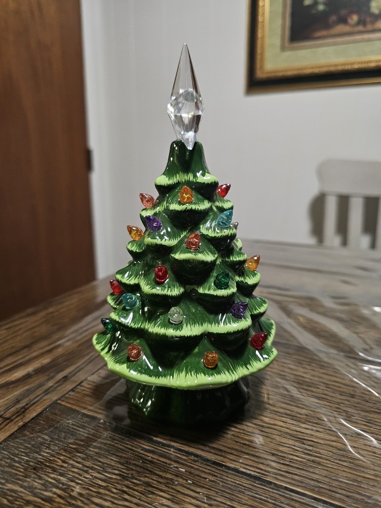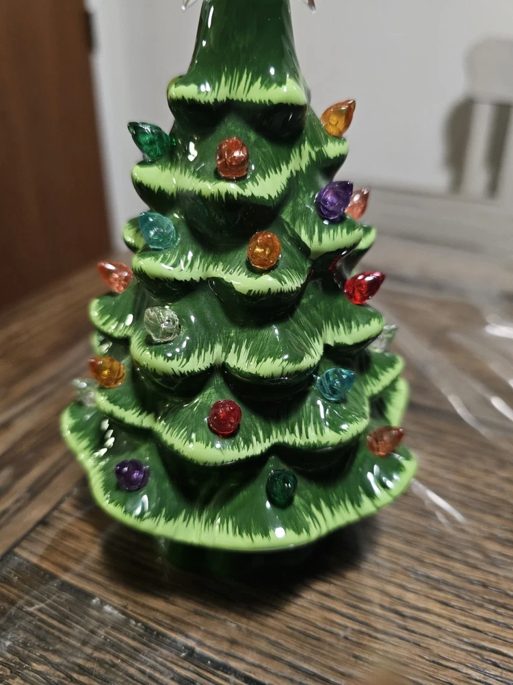 The Ceramic Tabletop Christmas Tree is a festive and charming addition to your holiday décor. Standing at 7.5 inches tall, this multicolored tree lights up to add a warm and cozy touch to your home during Christmas. Made of ceramic, this Christmas decoration is durable and easy to display on a tabletop or shelf. Perfect for adding a traditional touch to your holiday season. Battery operated. Batteries not included. No missing lights and no damage!