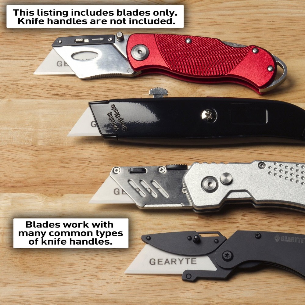 utility replacement blades can be used in many types of knife handles, from straight box cutters, to folding style cutters and to EDC knife handles that accept a utility blade replacement. CERAMIC UTILITY KNIFE replacement blades are razor sharp and will cut through standard packaging materials with ease. Strong, long wearing Zirconia Ceramic material stays sharp even after extended use. CERAMIC BOX CUTTER REFILLS will stay sharp up to 10 times longer than a steel razor blade. Ultra strong Zirconium Oxide (Zirconia) ceramic will not spark or rust, making it a safer option than other blades in some applications. CERAMIC UTILITY KNIFE blades will cut through tape, paper, cardboard, plastic and nylon and fiber strapping materials with ease. CERAMIC UTILITY BLADES will keep an edge longer than a steel blade but are also easier to break under stress. It is advised that you only use ceramic blades for cutting and slicing only and do not use them to pry things or use the blade as a screwdriver or chisel. CERAMIC BLADE box cutter and utility knife blades refills come in a reusable plastic case that provides protection for the blades and a convenient storage option.