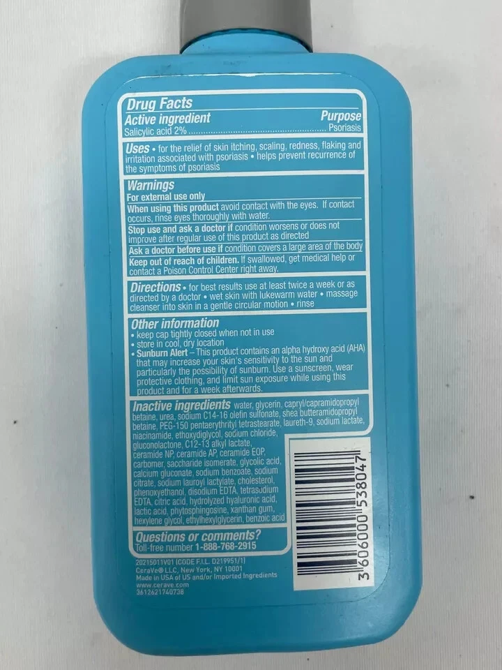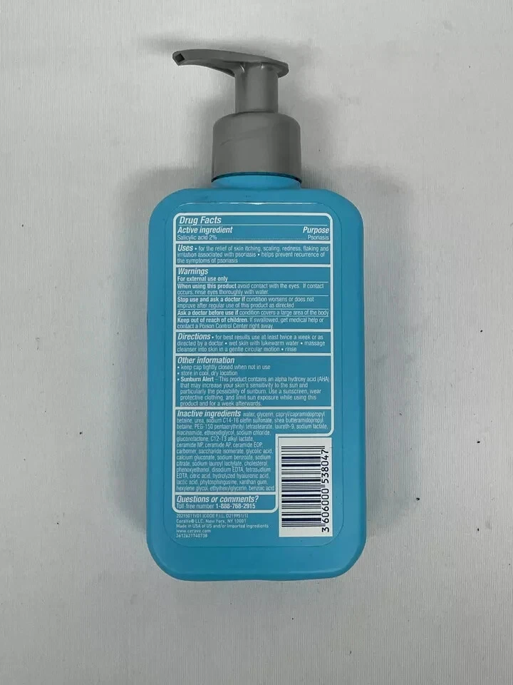 Developed with dermatologists, Psoriasis Skin Therapy Cleanser gently cleanses psoriatic skin while repairing skin's natural protective barrier with 3 essential ceramides. Removes scales and dead skin and helps restore essential moisture. Helps prevent recurrence of the symptoms of psoriasis. 2% salicylic acid to help relieve irritated skin. Lactic acid for mild exfoliation. Moisturizing glycerin and urea & soothing niacinamide •Non-Comedogenic •Gentle, non-irritating formula •Fragrance-free Key Ingredients: •2% Salicylic Acid: Relieves skin itching, scaling, redness, flaking and irritation associated with psoriasis •Lactic Acid: Helps smooth and soften rough skin •MVE Technology: This patented delivery system continually releases moisturizing ingredients for 24-hour hydration •Ceramides: Essential for healthy skin, ceramides help restore and maintain the skin’s natural barrier •Niacinamide: Helps calm the skin [ PSORIASIS BODY WASH ] Formulated to relieve, gently cleanse and exfoliate dry skin, itchy skin, rough and bumpy skin, and especially psoriasis-prone skin. Suitable for use as a face wash, hand soap, or body wash. [ HYDRATING, MEDICATED FORMULA ] With Lactic Acid for gentle exfoliation, 2% Salicylic Acid to relieve skin itching, scaling, redness, flaking and irritation associated with psoriasis, Niacinamide to calm skin, and Urea to help moisturize. [ SKIN CARE FOR PSORIASIS ] Massage Psoriasis Cleanser into skin in gentle, circular motions with a washcloth or shower loofah. Can be paired with Psoriasis Moisturizing Cream to moisturize & relieve. [ 3 ESSENTIAL CERAMIDES ] Ceramides are found naturally in the skin and make up 50% of the lipids in the skin barrier. All products are formulated with three essential ceramides (1, 3, 6-II) to help restore and maintain the skin’s natural barrier [ DEVELOPED WITH DERMATOLOGISTS ] Skincare is developed with dermatologists. Fragrance free, allergy-tested, and non-comedogenic. Recognized by the National Psoriasis Foundation. FSA Eligible & HSA Eligible