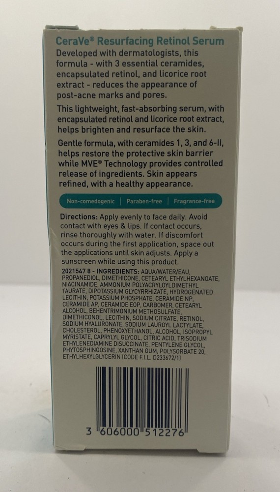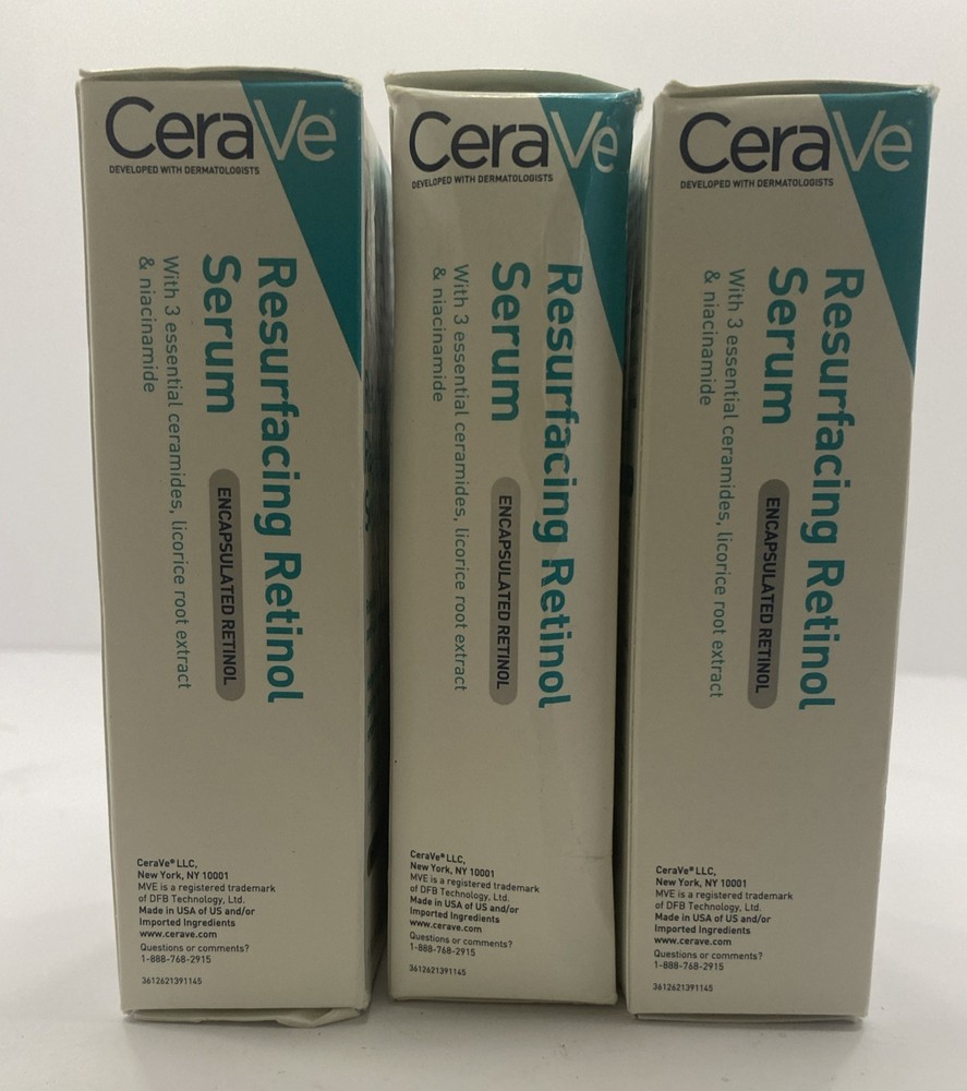 Cerave Resurfacing Retinol Serum - 1oz. 3pk. We are a shelf pull and stockpile group. Bottles might be slightly scratched or dented but NEW