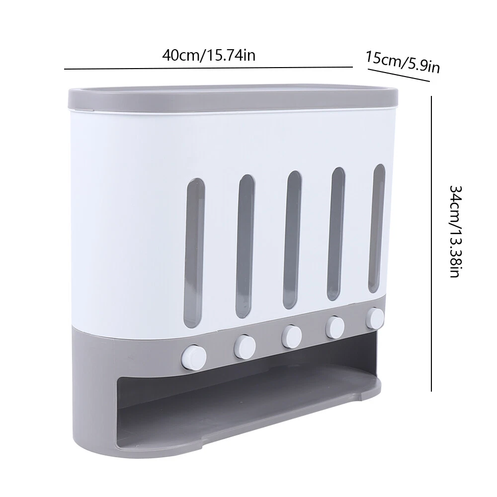 Package Includes 1x Dry Food Dispenser 1x Cup 4x Screws Features: Easy to use: The tank is transparent visual design of the storage dispenser, easy to check the remaining amount at any time. And it is more convenient to take the grain out by pressing the button and put the grain into the tank from the top of the box. Large Capacity: Large capacity can hold all kinds of dry food. Make your kitchen clean and tidy. The large compartments on both sides can hold 2.1kg of grains, and the middle three small compartments can hold 1.6kg of grains each Great Design And Tableware Storage:This Rice Storage Container Also Fit For Cereal, Snacks, Nuts And Baking Supplies. The Airtight Seal Lid Which Ensure To Keep Your Food Dry And Fresh. It Can Make Your Kitchen Neatly Organized. 💖welcome to aaertu~💖 Package Includes 1x Dry Food Dispenser 1x Cup 4x Screws Features: Easy to Use: the Tank Is Transparent Visual Design of the Storage Dispenser, Easy to Check the Remaining Amount at Any Time. and It Is More Convenient to Take the Grain out by Pressing the Button and Put the Grain into the Tank from the Top of the Box. Large Capacity: Large Capacity Can Hold All Kinds of Dry Food. Make Your Kitchen Clean and Tidy. the Large Compartments on Both Sides Can Hold 2.1kg of Grains, and the Middle Three Small Compartments Can Hold 1.6kg of Grains Each Great Design and Tableware Storage:this Rice Storage Container Also Fit for Cereal, Snacks, Nuts and Baking Supplies. the Airtight Seal Lid Which Ensure to Keep Your Food Dry and Fresh. It Can Make Your Kitchen Neatly Organized. You Will Have a Good Mood to Do Cooks Every Day Rice Storage Bin Division: One Type One Switch,Classified Storage of Grain,Separate Buttons for Classification, Without Confusion and Quantitative Feeding.movable Detachable Partition,Free Combination of Grids,the Barrel Body Is Equipped with 5 Partitions, Which Can Be Separated According to Requirements.one Key Press Without Leaving Old Rice. Safe and High Quality: Made of High Quality Food Grade Materials. You Won't Have to Worry About the Health of Your Family. Durable and Shatterproof, We Have Tested the Storage Container Body Ensure It to Be Strong and Durable Enough for Long-lasting Use. Wide Range of Applications: It Has a Wide Application Range, and the Whole Grains in the Kitchen Can Be Placed Freely. with a Visual Scale Window, You Can Observe Reserves in Real-time. Easy to Install: Just Drill Holes in the Wall to Install, Hang on the Wall, save a Lot of Space! You Can Also Place It Directly on the Countertop Suitable for Black Rice, Yellow Rice, Red Beans, Rice, Mung Beans, Soybeans and Other Small Granular Grains. Not Suitable for Oatmeal, Peanut , Large Grain Cereals. Specification: Material: Pp+Ps Total Capacity: 9kg Cup Capacity: 190g Color: Gray-white Size: About 40x15x34cm/15.75x5.91x13.39in Weight: About 1.8kg Reminder:as the Discharge Diameter of the Product Is Only 2cm,Only Suitable for Black Rice, Yellow Rice, Red Beans, Rice, Mung Beans, Soybeans and Other Small Granular Grains. Not Suitable for Oatmeal, Peanut , Large Grain Cereals. Payment Delivery details Terms of sales About us Contact us Payment We accept ebay payment 。 Fees such as import duties, taxes are not included in the item price or shipping costs. These charges are the buyer's responsibility. Delivery details Shipping: 2-9 working days to: USA Terms of sales We maintain high standards of excellence and strive for hundred percent customer satisfaction. Feedback is very important to us. We hope that you contact us immediately before you give neutral or negative feedback, so that we can address your concerns. It is impossible to address issues if we do not know about them! About us Your satis faction is our ultimate goal. We work hard to earn your trust and future business. Our certified technicians have tested each item before shipping. The unit comes with 1 year limited warranty on all manufacturing defects. a) If you receive a defective item, you may return it or ask for a discount. Please contact us within 14 days after you receive the package. b) What you returned must be intact and in its original packaging as re? u. Customer is responsible for shipping costs of the returned item. c) We will cover the cost of shipping back t with the shipping rate indicated in the registration page. We will send you a new unit or refund the full payment you paid. Thank you. Contact us Business Hour Business Hour: Monday To Friday: 8:30 AM to 5:00 PM (Beijing China time) Due to time zones, our reply to your questions may not be immediately. But within above working time, we will reply your email within 24 hours. If it's non-workdays, please kindly be patient and wait till Monday. Please contact us with ebay message. Please feel free to contact us if you have any questions. Monday To Friday: 8:30 AM to 5:00 PM (Beijing China time) Due to time zones, our reply to your questions may not be immediately. But within above working time, we will reply your email within 24 hours. If it's non-workdays, please kindly be patient and wait till Monday. Please contact us with ebay message. Please feel free to contact us if you have any questions.