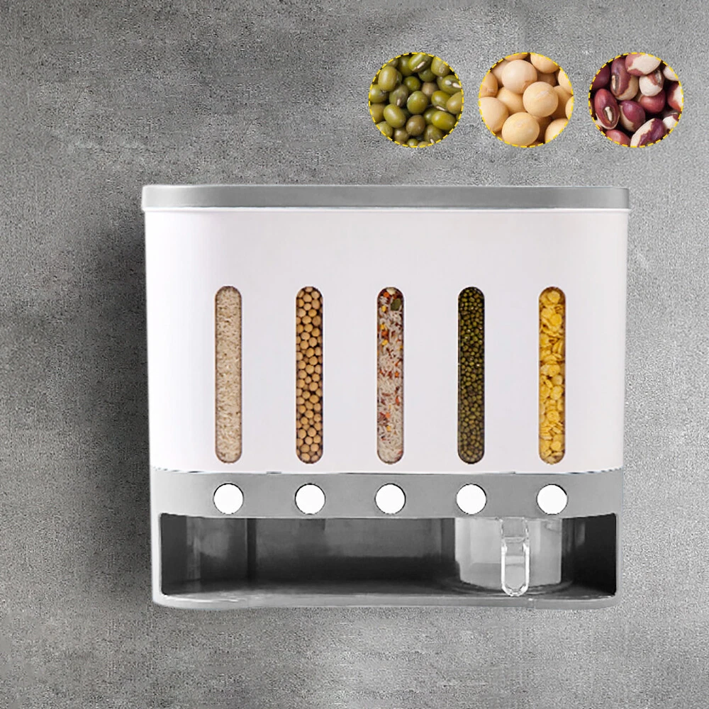 Cereal Dispenser Rice Grain Dry Food Container Storage Wall Mounted Case Kitchen Package Includes 1x Dry Food Dispenser 1x Cup 4x Screws Features: Easy to use: The tank is transparent visual design of the storage dispenser, easy to check the remaining amount at any time. And it is more convenient to take the grain out by pressing the button and put the grain into the tank from the top of the box. Large Capacity: Large capacity can hold all kinds of dry food. Make your kitchen clean and tidy. The large compartments on both sides can hold 2.1kg of grains, and the middle three small compartments can hold 1.6kg of grains each Great Design And Tableware Storage:This Rice Storage Container Also Fit For Cereal, Snacks, Nuts And Baking Supplies. The Airtight Seal Lid Which Ensure To Keep Your Food Dry And Fresh. It Can Make Your Kitchen Neatly Organized. You Will Have A Good Mood To Do Cooks Every Day Rice Storage Bin Division: One Type One Switch,Classified Storage Of Grain,Separate Buttons For Classification, Without Confusion And Quantitative Feeding.Movable Detachable Partition,Free Combination Of Grids,The Barrel Body Is Equipped With 5 Partitions, Which Can Be Separated According To Requirements.One Key Press Without Leaving Old Rice. Safe And High Quality: Made Of High Quality Food Grade Materials. You Won't Have To Worry About The Health Of Your Family. Durable And Shatterproof, We Have Tested The Storage Container Body Ensure It To Be Strong And Durable Enough For Long-Lasting Use. Wide Range Of Applications: It Has A Wide Application Range, And The Whole Grains In The Kitchen Can Be Placed Freely. With A Visual Scale Window, You Can Observe Reserves In Real-Time. Easy to install: just drill holes in the wall to install, hang on the wall, save a lot of space! You can also place it directly on the countertop Suitable For Black Rice, Yellow Rice, Red Beans, Rice, Mung Beans, Soybeans And Other Small Granular Grains. Not Suitable For Oatmeal, Peanut , Large Grain Cereals. Specification: Material: PP+PS Total Capacity: 9Kg Cup capacity: 190g Color: gray-white Size: About 40x15x34cm/15.75x5.91x13.39in Weight: About 1.8kg Payment Delivery details Terms of sales About us Contact us Payment We accept ebay payment 。 Fees such as import duties, taxes are not included in the item price or shipping costs. These charges are the buyer's responsibility. Delivery details Shipping: 2-9 working days to: USA Terms of sales We maintain high standards of excellence and strive for hundred percent customer satisfaction. Feedback is very important to us. We hope that you contact us immediately before you give neutral or negative feedback, so that we can address your concerns. It is impossible to address issues if we do not know about them! About us Your satis faction is our ultimate goal. We work hard to earn your trust and future business. Our certified technicians have tested each item before shipping. The unit comes with 1 year limited warranty on all manufacturing defects. a) If you receive a defective item, you may return it or ask for a discount. Please contact us within 14 days after you receive the package. b) What you returned must be intact and in its original packaging as re? u. Customer is responsible for shipping costs of the returned item. c) We will cover the cost of shipping back t with the shipping rate indicated in the registration page. We will send you a new unit or refund the full payment you paid. Thank you. Contact us Business Hour Business Hour: Monday To Friday: 8:30 AM to 5:00 PM (Beijing China time) Due to time zones, our reply to your questions may not be immediately. But within above working time, we will reply your email within 24 hours. If it's non-workdays, please kindly be patient and wait till Monday. Please contact us with ebay message. Please feel free to contact us if you have any questions. Monday To Friday: 8:30 AM to 5:00 PM (Beijing China time) Due to time zones, our reply to your questions may not be immediately. But within above working time, we will reply your email within 24 hours. If it's non-workdays, please kindly be patient and wait till Monday. Please contact us with ebay message. Please feel free to contact us if you have any questions. Brand Unbranded Material PP+PS Type Food Storage Box Number of Items in Set 1 Color White Lid Type Food Storage Box Department Teens Item Height 34cm Item Length 40cm Item Width 15cm Custom Bundle No Bundle Description Food Storage Box MPN Does not apply Features Easy Clean Discharge diameter 2cm On Jan 22, 2026 at 21:51:48 PST, seller added the following information: