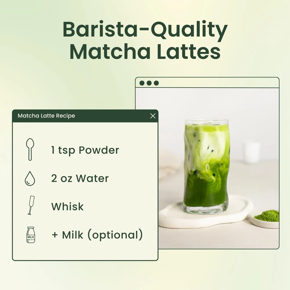 Seriously good Ceremonial Grade Organic Matcha. For seriously good drinks. Perfect if you occasionally drink Matcha on its own, and also make Matcha Lattes. Silky smooth. Almost zero bitterness, so you can drink without added sugar. 100% organically grown with JAS-certification. MINDFUL, CALM ENERGY: Goodbye, coffee jitters. Experience elevated energy and enhanced, calm focus. A single cup of Kyoto Uji Matcha provides calm focus for 4-6 hours. No more caffeine crashes. NATURE'S DE-STRESSPRESSO: Unlike other stress relief products, Matcha soothes you down without making you sleepy. Stay alert, calm and focused, and experience enhanced mindfulness with nature's de-stresspresso. ABSOLUTELY NOTHING ADDED (and still tastes good): Unlike lower-quality Matcha, our Kyoto Uji Matcha doesn't require sweeteners to taste good - a perfect addition to your health-conscious lifestyle. Savor the authentic taste of organic ceremonial matcha powder sugar-free, with nothing added. DELICIOUS, BARISTA-QUALITY LATTES: Create café-style Matcha lattes, with barista-approved Matcha powder. Our Matcha is ground with a uniform particle size for a silky-smooth mouthfeel, to ensure your homemade creations rival those of your favorite coffee shop. CRAFTED BY ARTISANS: Instead of nameless big corporations, each grain of our ceremonial grade organic powder is ground with care by artisan farming communities in Japan who uphold centuries-old traditions. We work with family-owned businesses in Japan to support local artisans, so we know exactly what goes in your tea.