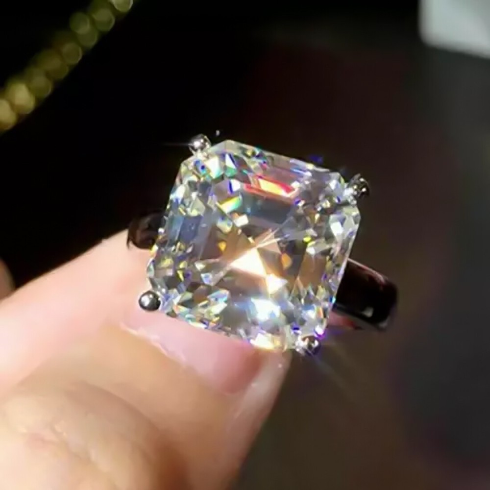 $ 188.0716.10 Ct Asscher Cut White Diamond Solitaire Ring In 925 Silver Certified