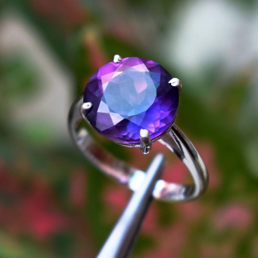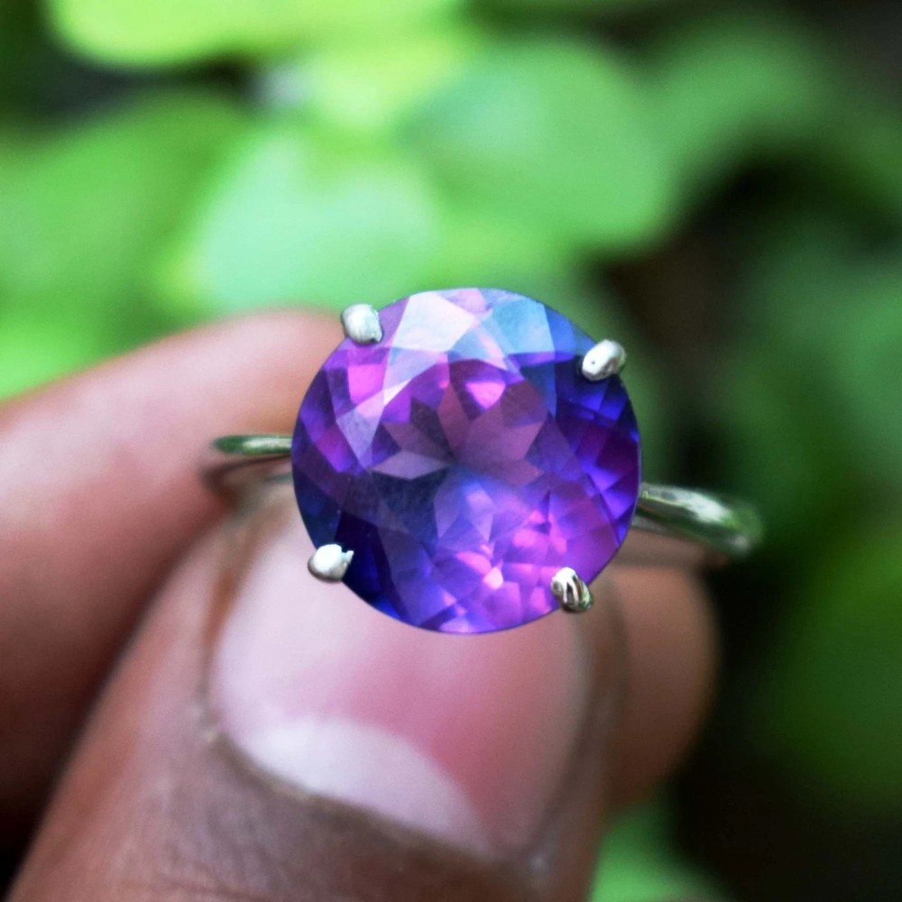 $ 49.378 Ct Natural Color Change Alexandrite Ring 925 Sterling Silver All Sizes