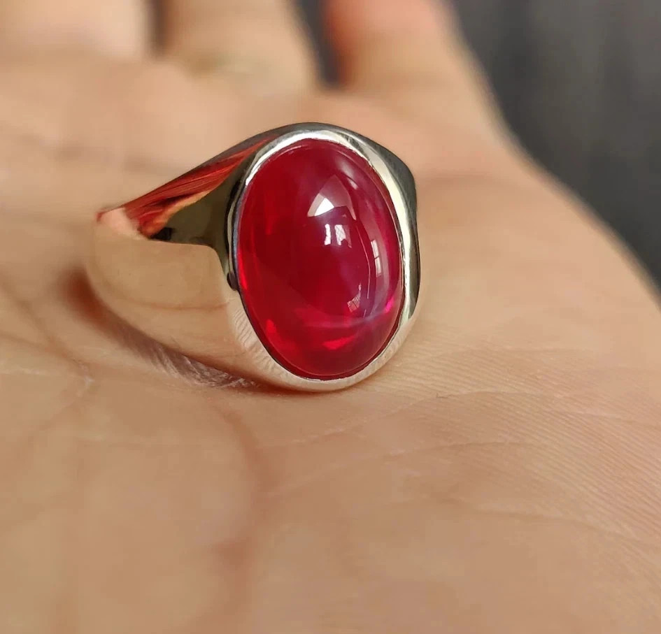 ✨ Product Overview Experience the bold elegance of this 10 Ct Natural Red Star Ruby Men’s Ring , crafted with precision in 925 Sterling Silver . This stunning gemstone exhibits a beautiful 6-ray star effect (Asterism) that stands out under direct light, giving the ring a unique celestial appeal. The ruby has undergone traditional heating , enhancing its natural color and internal clarity. 💎 Gemstone Details Gemstone: Natural Red Star Ruby Weight: 10 Carats Cut: Oval Cabochon Star Effect: Sharp 6 Rays under strong light Treatment: Heated Origin: India Feature: Strong color, smooth polish, excellent surface luster 💍 Ring Details Metal: 925 Sterling Silver Finish: High polish Design: Solid and durable men’s ring Sizes: Available in all sizes (custom sizing available on request) Comfort Fit: Smooth inner band for easy all-day wear ✨ Why This Ring is Special ✔ Real natural ruby with visible 6-ray star ✔ Heated for enhanced beauty — industry-standard, permanent ✔ Bold 10 carat presence — makes a strong statement ✔ Perfect for daily wear, gifting, or gemstone collectors ✔ Handmade craftsmanship with premium finishing 🎁 Ideal For Men’s fashion & everyday wear Astrology and gemstone healing enthusiasts Anniversary & birthday gifts Jewelry collectors Engagement or special occasion ring 🚚 Ships Worldwide with Tracking 📦 Secure & Protective Packaging ⏱️ Handling Time: 1–2 Business Days 🕒 Estimated Delivery: 10–15 Days (Varies by Location) 🔁 30-DAY RETURN POLICY – BUY WITH CONFIDENCE We offer a 30-Day Hassle-Free Return Policy . Return the item in its original condition if you're not fully satisfied. 🤝 YOUR SATISFACTION MATTERS 💬 Contact us anytime for support, questions, or custom requests. We're available 24/7 to provide fast and friendly service. 🛠️ CUSTOM ORDERS WELCOME 📩 Reach out to Gemoracrafts – Experts in handcrafted luxury design. 🛍️ ABOUT GEMORACRAFTS Gemoracrafts is your trusted source for rare, certified gemstones and bespoke jewelry solutions . Every gem is carefully selected for quality, authenticity, and long-term value.